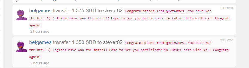 I have been having a lot of fun using a service that @BetGames has created here on steemit. I call it a service because you can't really lose if you are a active steemit user. If you don't win the bet they pay you back in up votes. You could say this even better if it gets some extra eyes on your post. They factor in the 25% curation so if you bet 1 SBD and lose you get 1.25 SBD in up votes. So you always win in the long run. I have bet on all the games so far and won a few and lost a few but they have been honest and giving me the up votes. On the wins my payouts have been with in a hour of games ending most time but always fast.