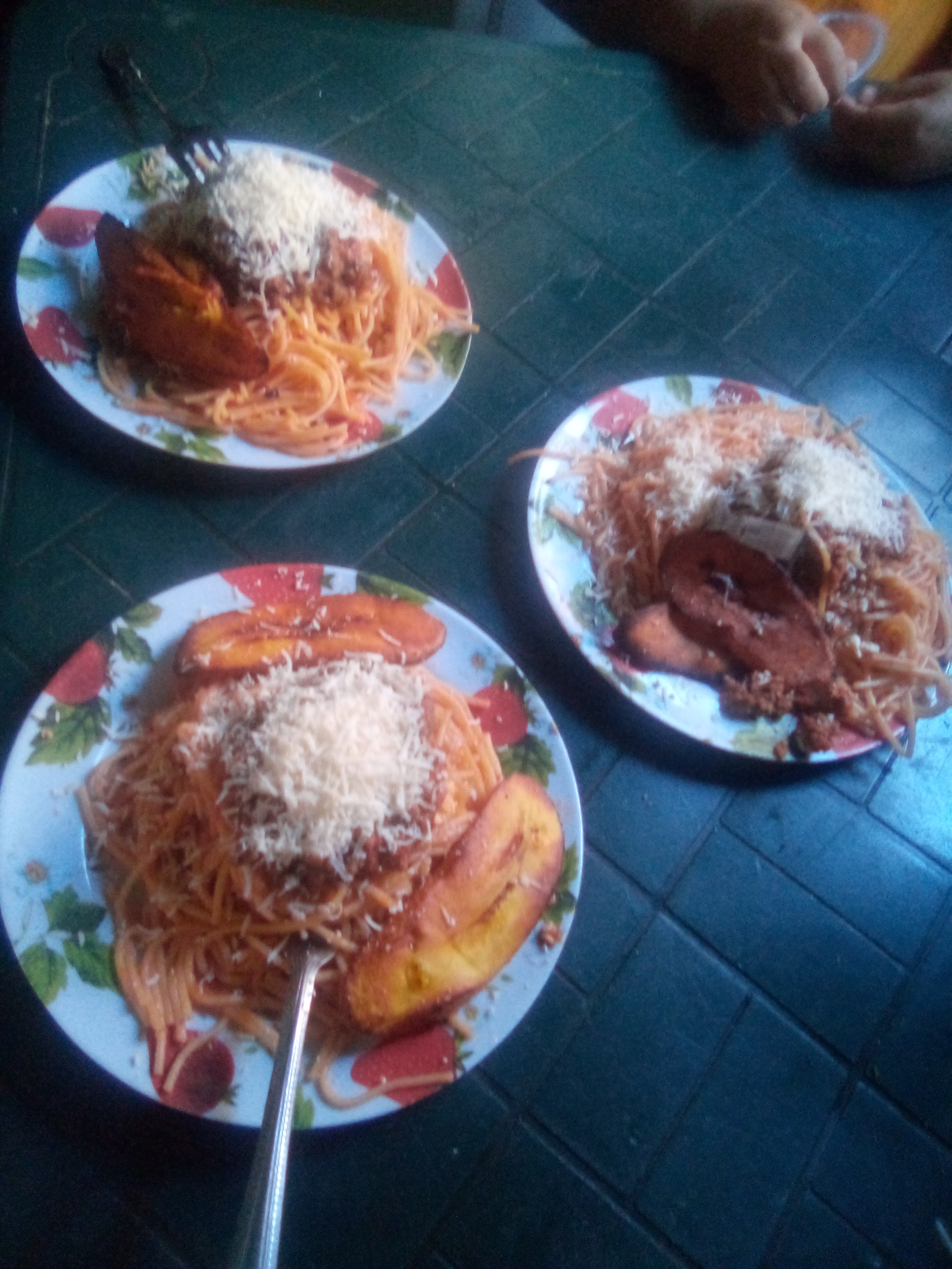 todas agotadas del día de ayer por último realizamos la cena comimos mis princesas y yo , hablamos con mi esposo que salió a viajar a Maturín y