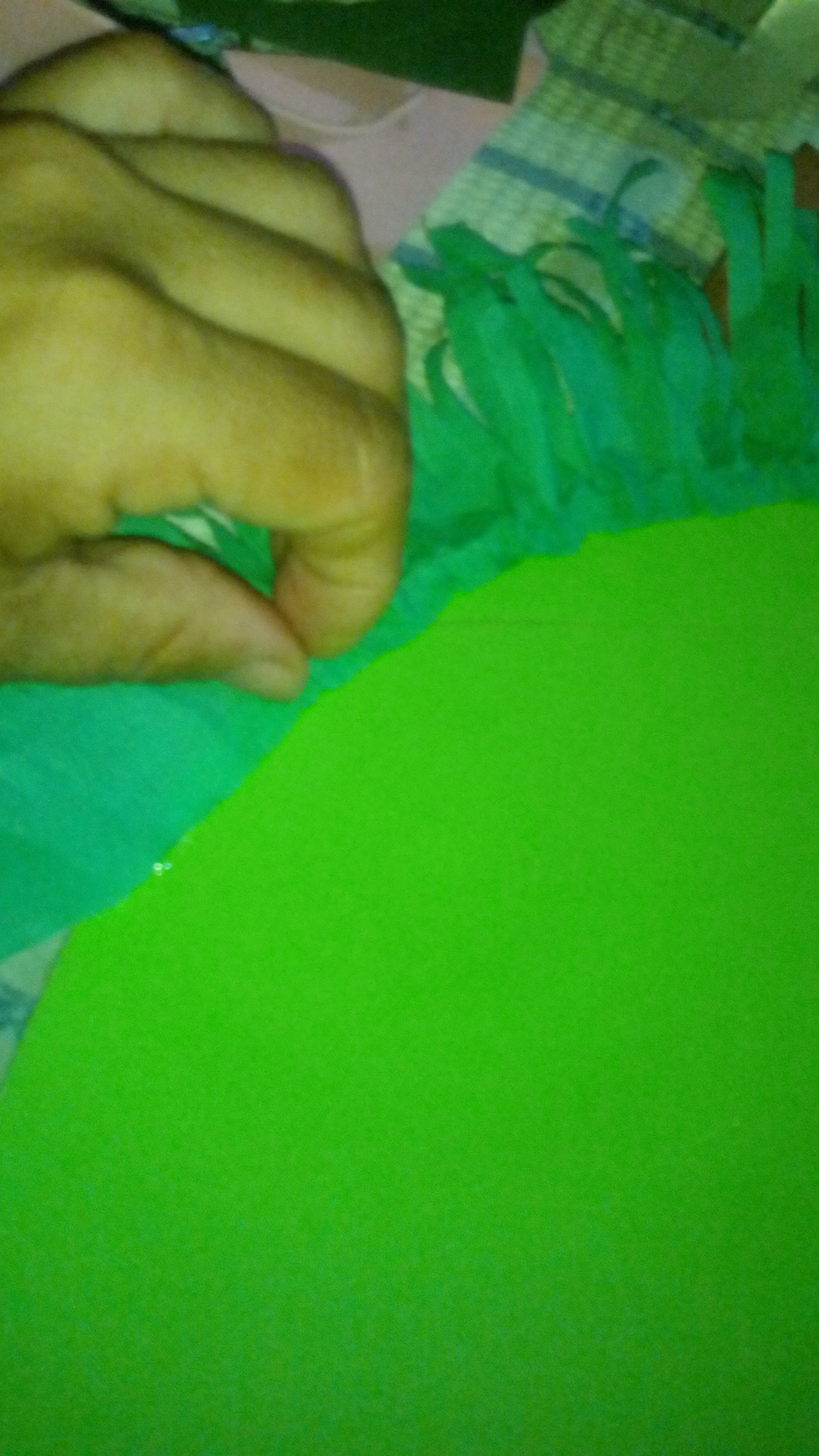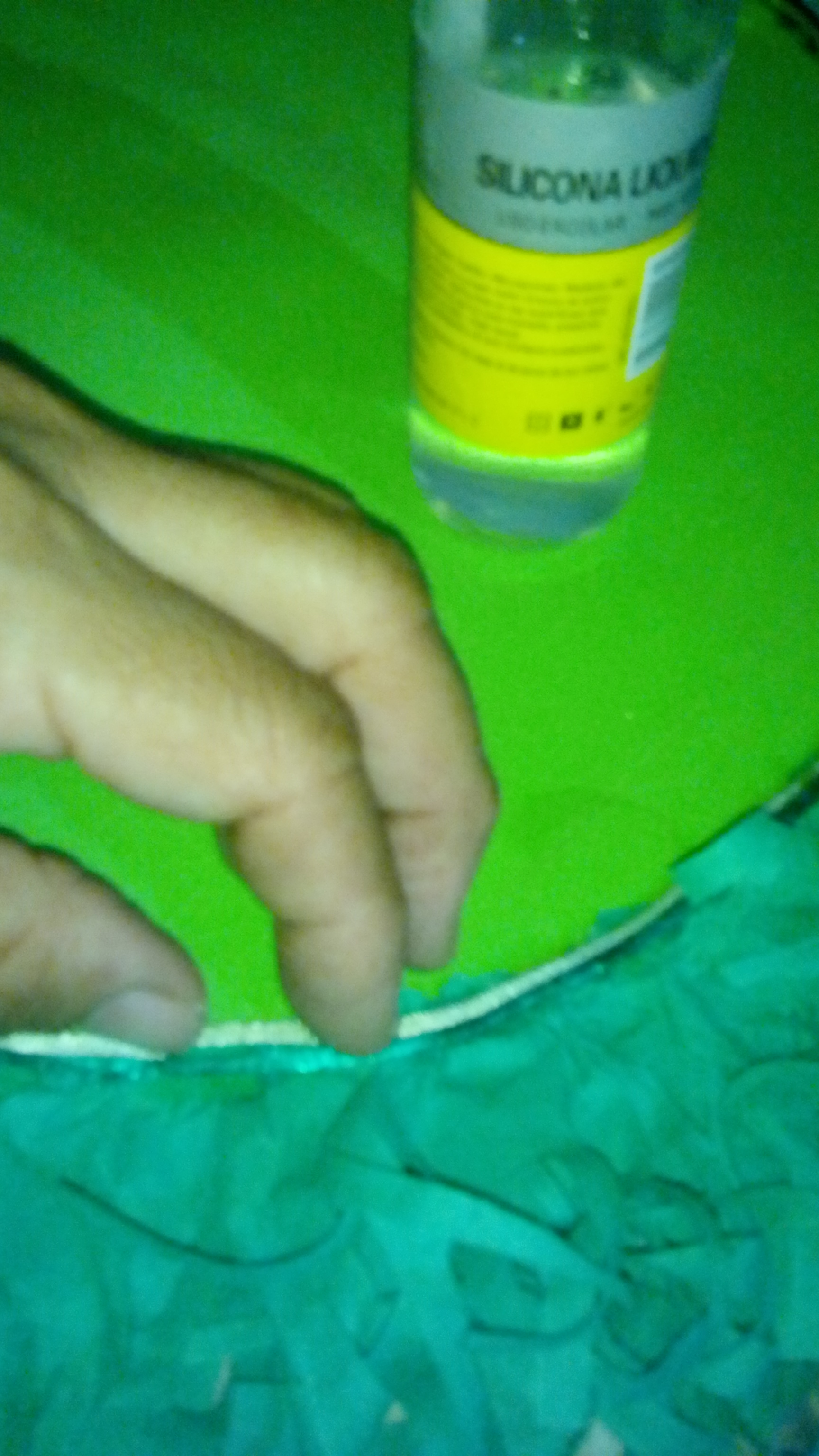 y empesando a realizar el toper se inicia cortando y pegando x todo alrededor de el cartón con el papel crepé