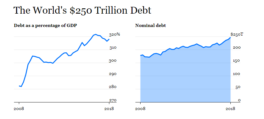 With the world debt hitting 250 trillion in September of 2018 the current economic system is unsustainable. It is no secret that the United States has been in an economic death spiral for more than a decade. Funding the wars in Iraq and Afghanistan has put enormous strain on an economy that could ill afford them. Printing money with no way to ensure the value and the current trade wars propagated by the current administration could be the straw that breaks the back of the American Economy. If history has shown us anything it is the truism that there is only one way out of such destabilizing debt, WAR.