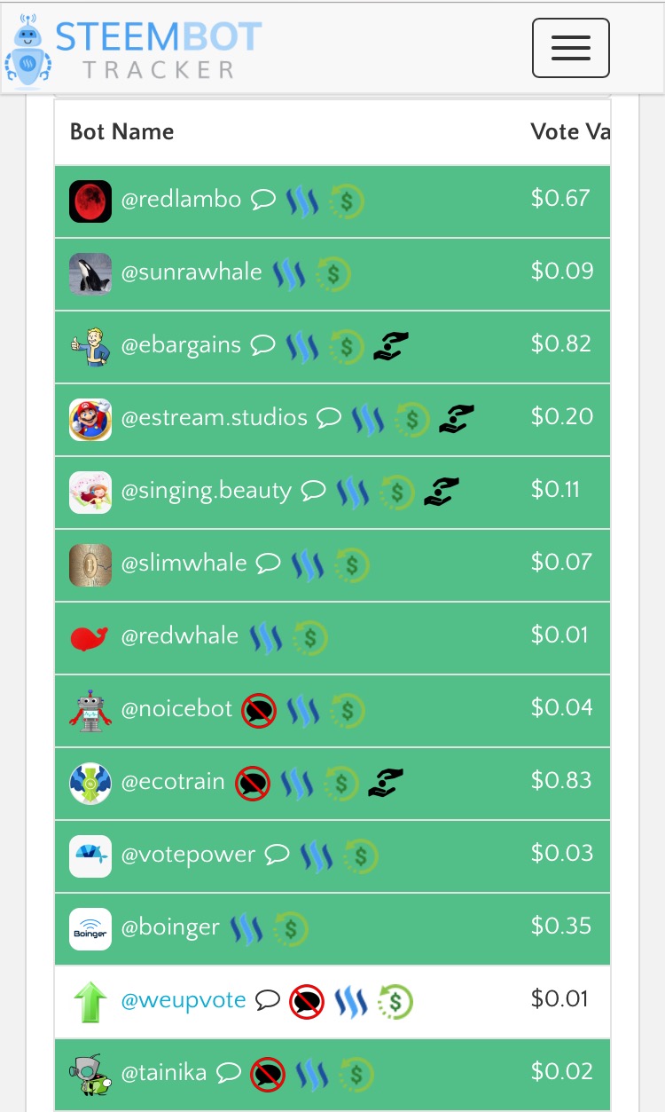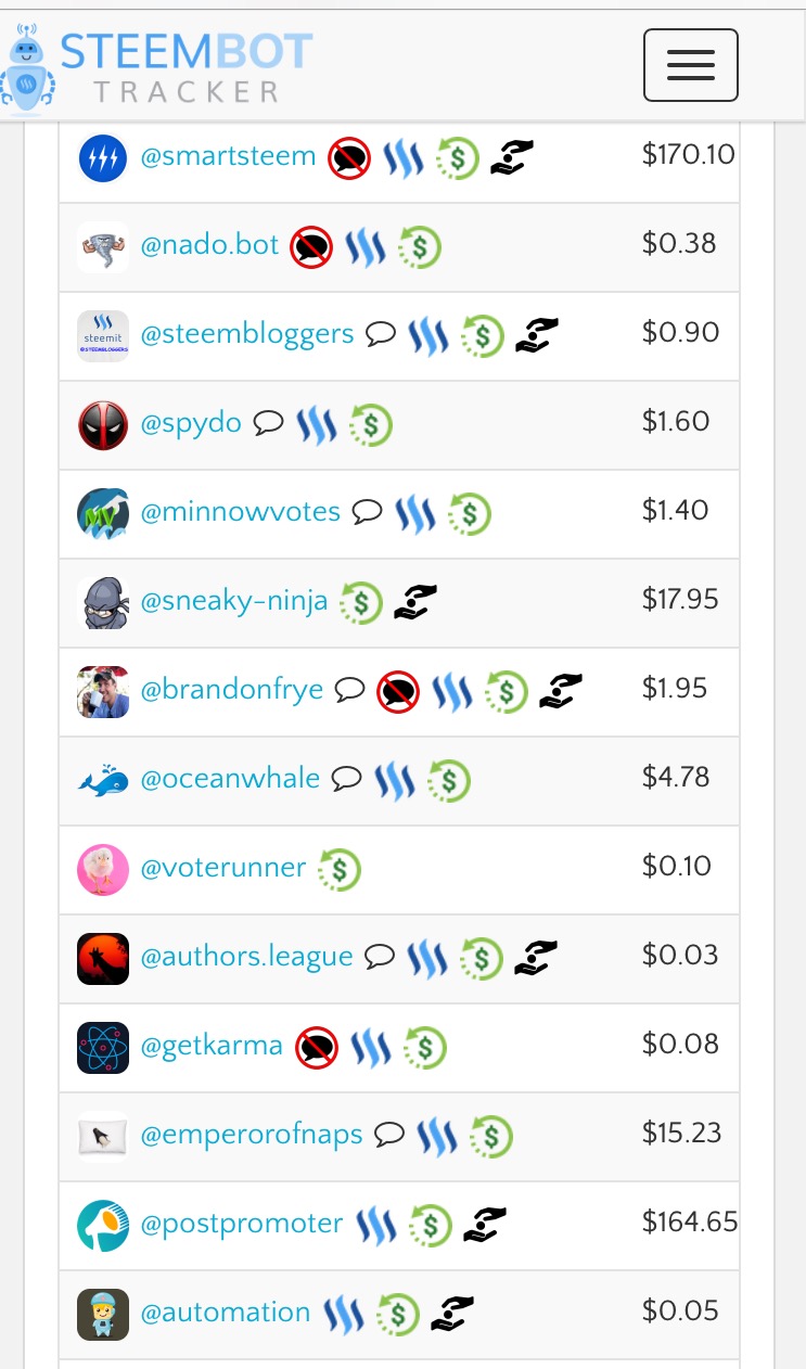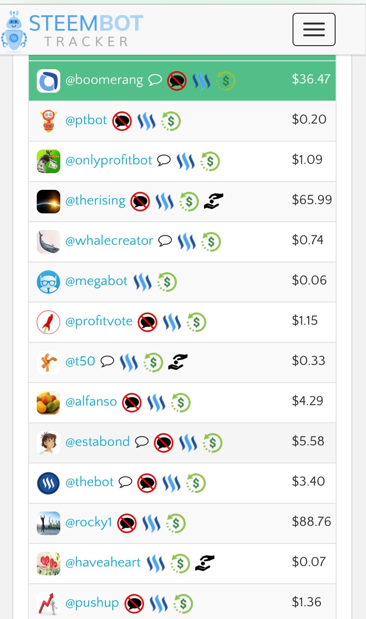 This is especially important because it saves you so much time from having to scour through the list of available bid bots. After all, there are a ton of them. Below in this post I have provided some screen shots showing many of the bid bots that can be found at steembottracker, you can reference this to see some examples of the bots that @Bod.bot can get for you (there's still even more bots than this!)