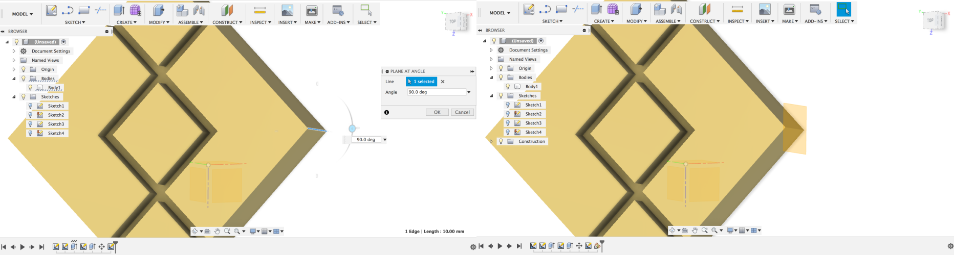 Then I extruded the rectangle of 60 mm by 60 mm with 10 mm with operation New Body.