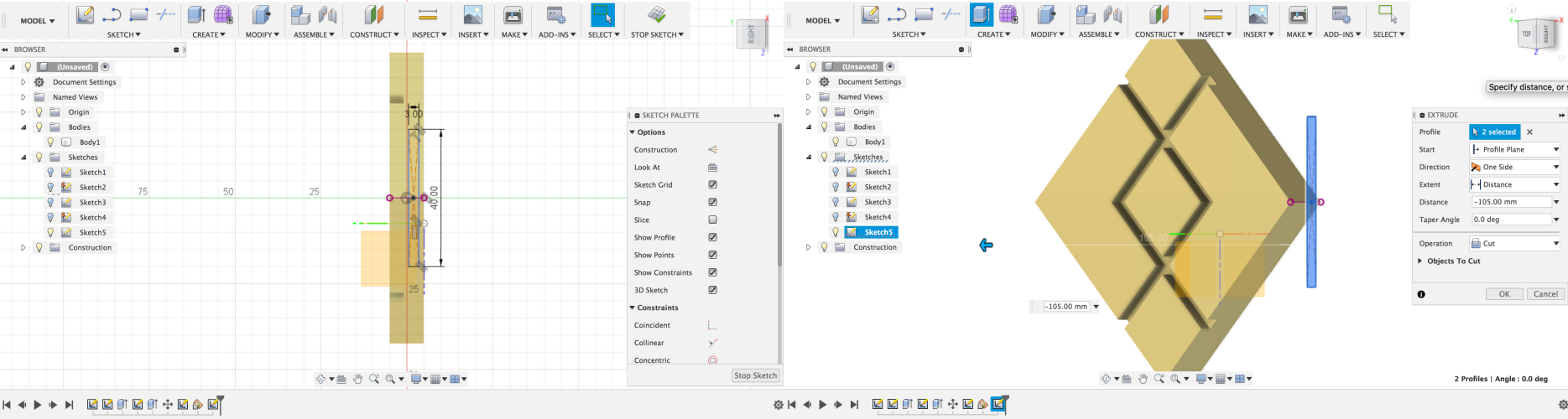 Here I selected the herringbone pattern and extruded it with 3 mm using operation Cut.