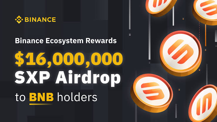 What is an airdrop, An airdrop is a distribution of a cryptocurrency token or coin, usually for free, to numerous wallet addresses. Binance rewards bnb holders SXP airdrop for holding the minimum of 0.1 BNB, the weight of the airdrop is measured by the amount of BNB you hold for 7 days, the more your BNB portfolio the more the airdrop you receive. You can trade with the SXP coin instantly on Binance Spot Trading or simply convert to BNB in seconds. Learn more about Binance SXP airdrop reward https://bit.ly/3o0lJY6