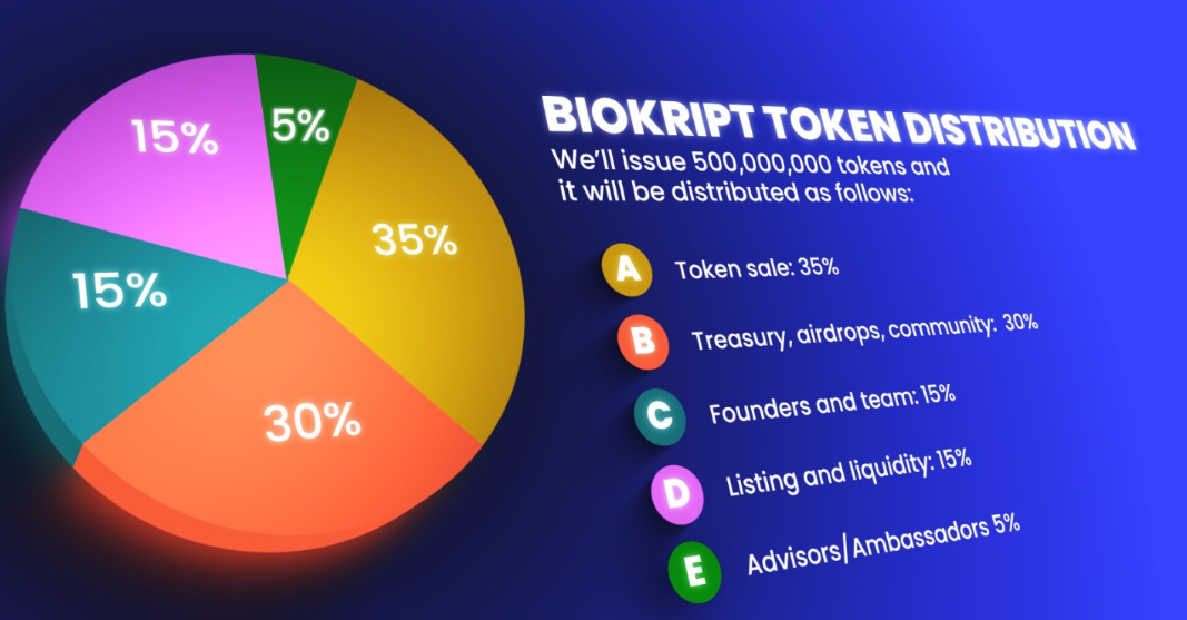 To ensure a transparent and equitable token distribution, Biokript has allocated the tokens as follows: