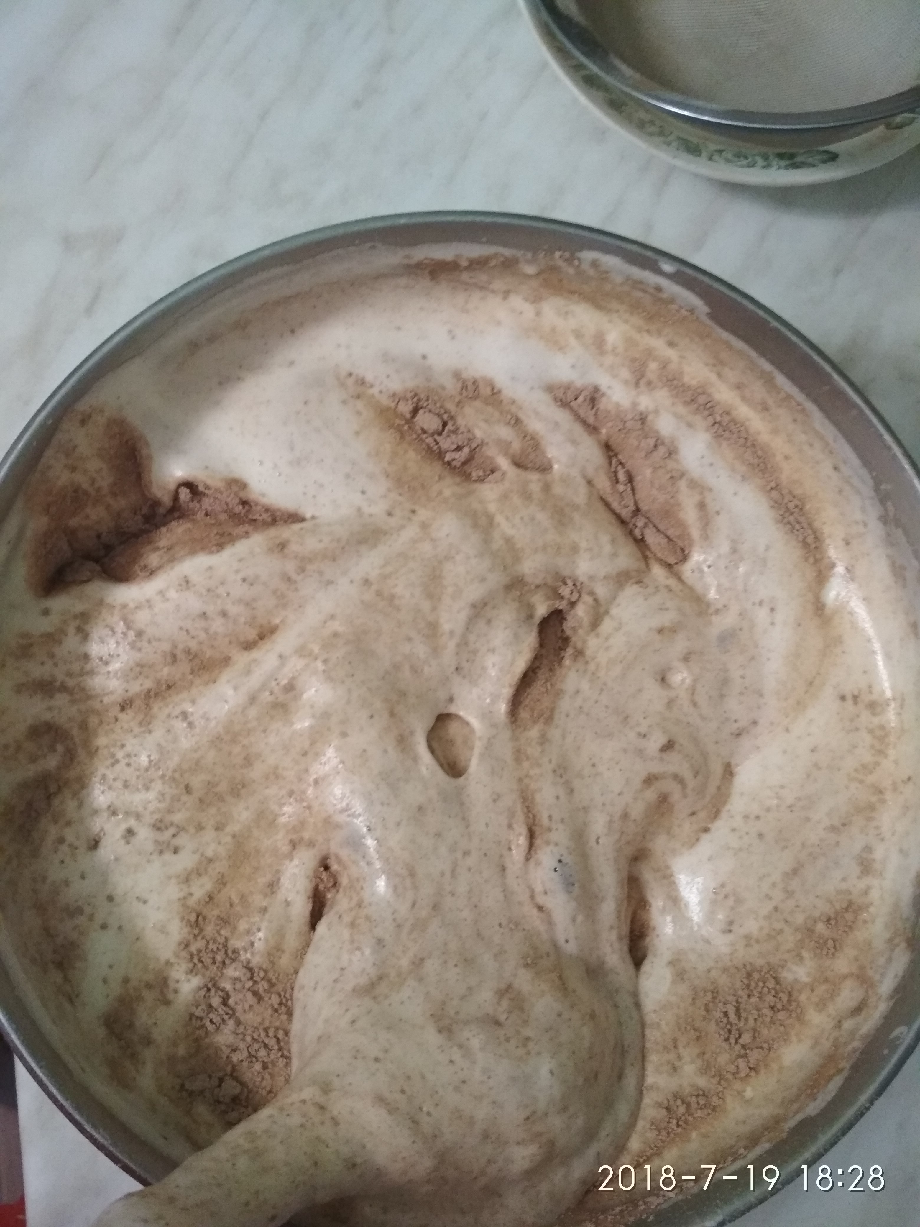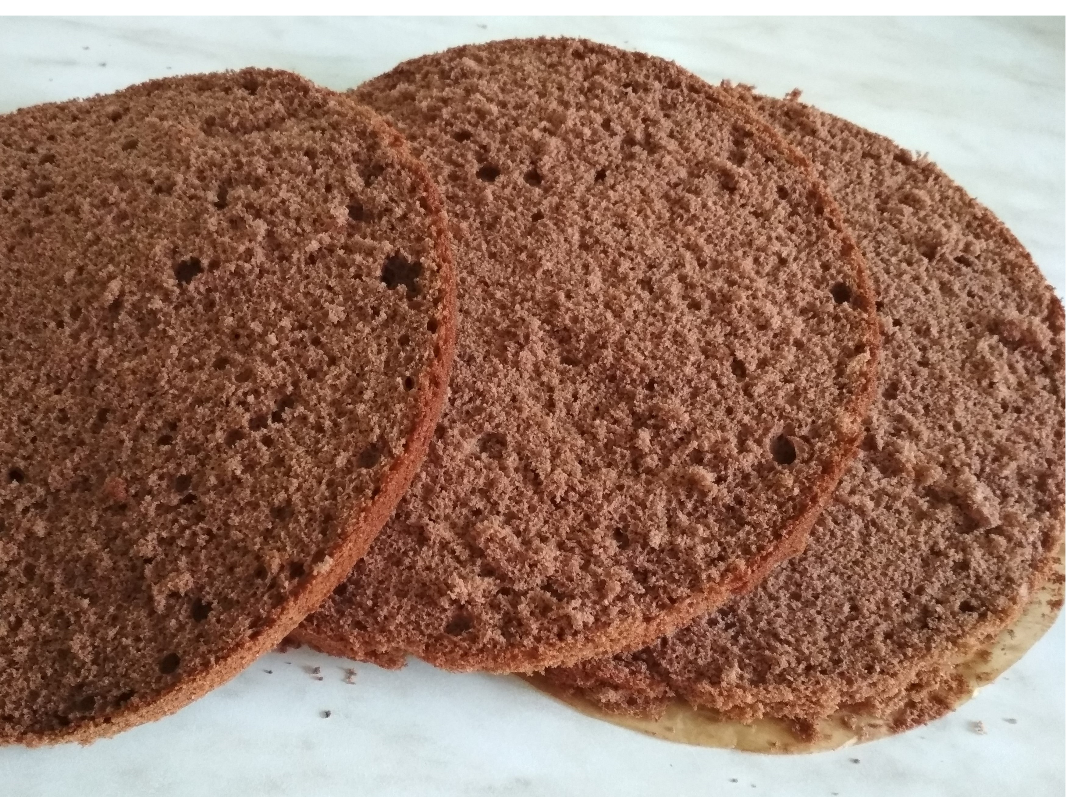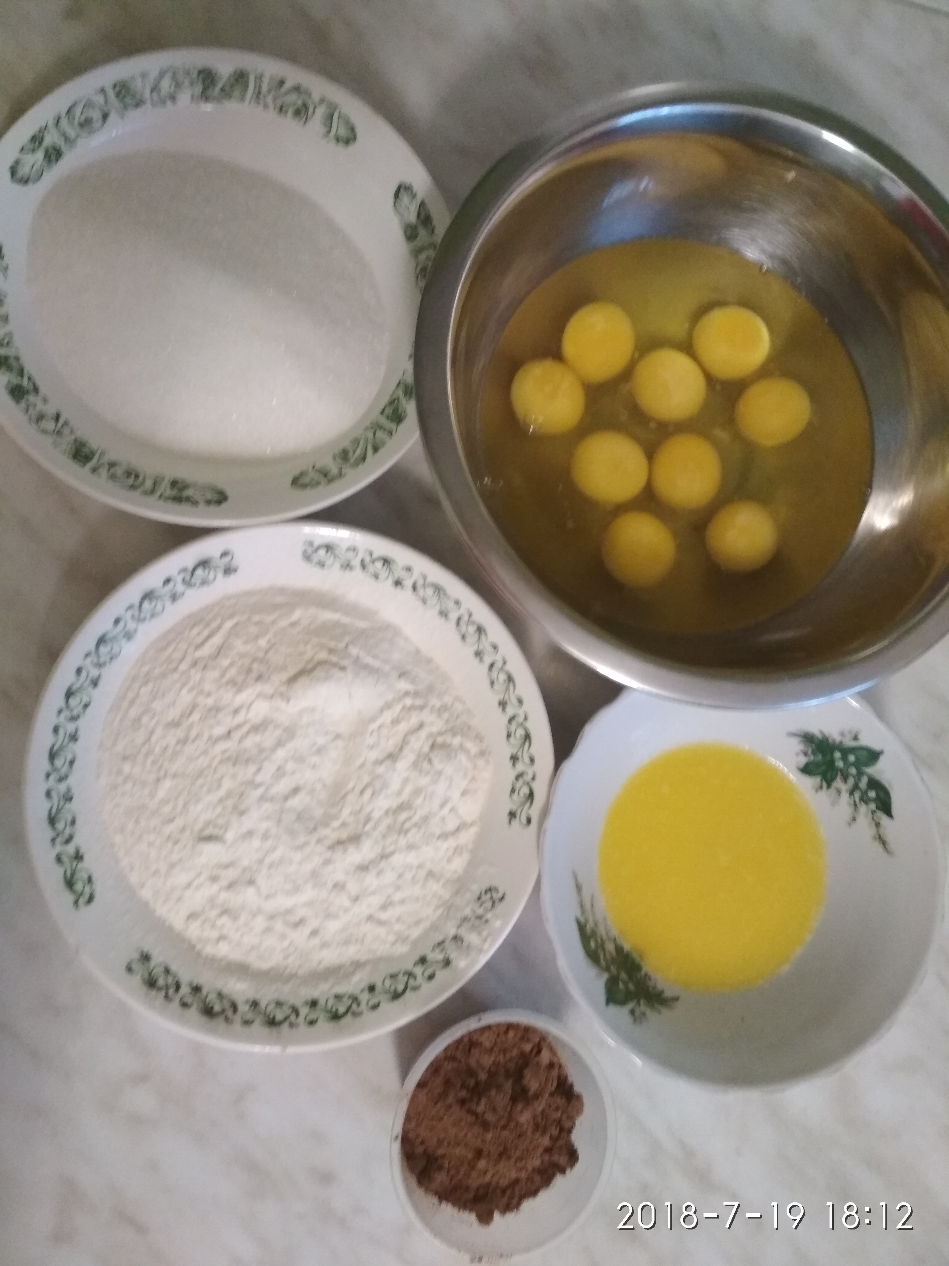 To mix eggs with salt and sugar, to put on a water bath constantly stirring slowly, to hold on a water bath before dissolution of sugar. Then to pour egg weight in a bowl of the mixer and to shake up 7-8 minutes. Meanwhile to connect flour and cocoa it is good to mix. In two steps to pour flour into the shaken-up mix and to vent well accurately to a uniform state. To pour in the kindled butter in weight on edge of a bowl and it is once again good to vent.