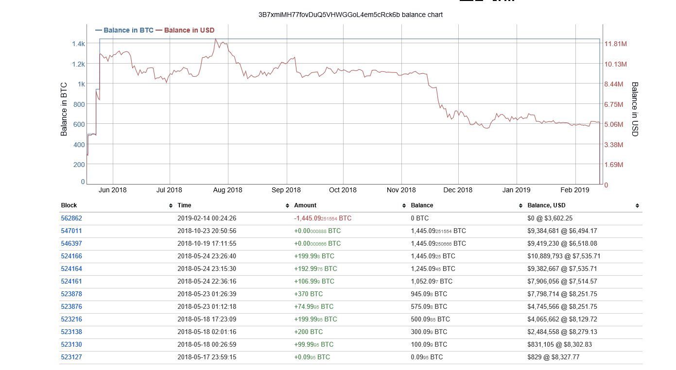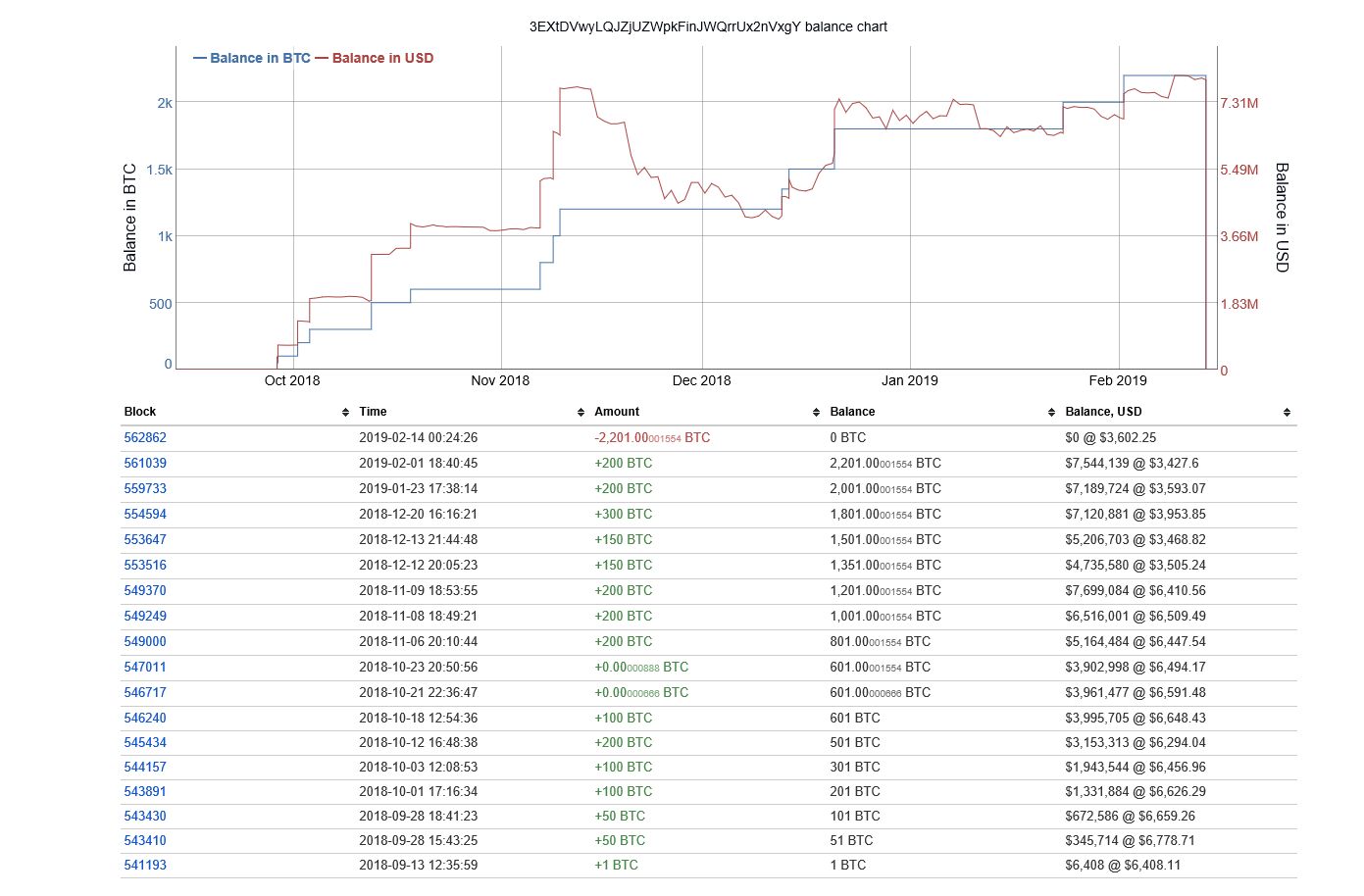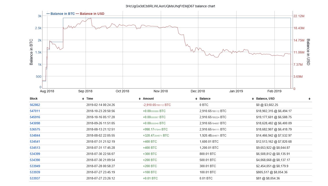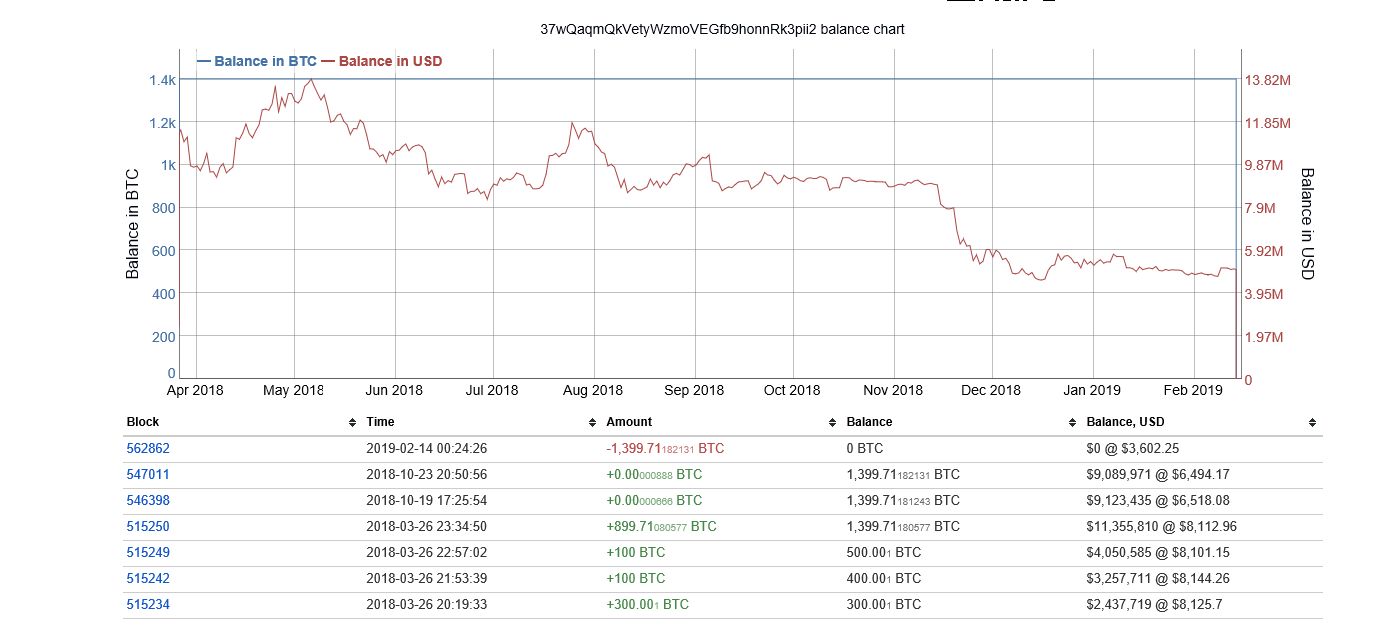 이 지갑의 주인은 2018년 하반기부터 비트파이넥스의 콜드월렛으로부터