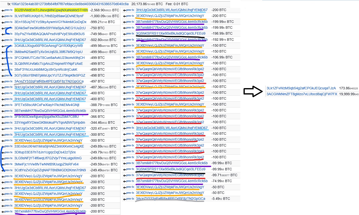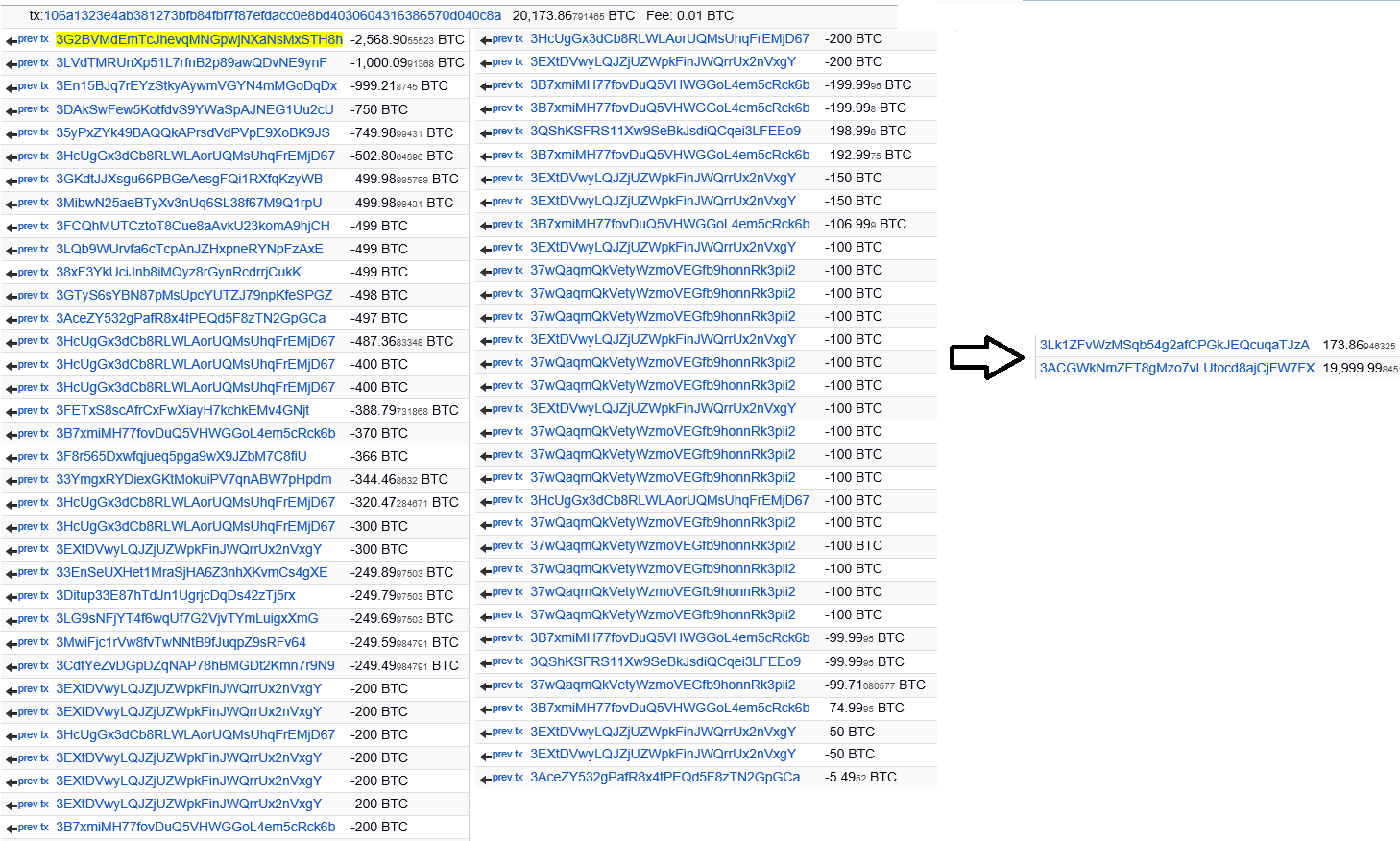 제일 대규모인 2만 BTC의 이체상황을 보도록 하겠습니다!!!