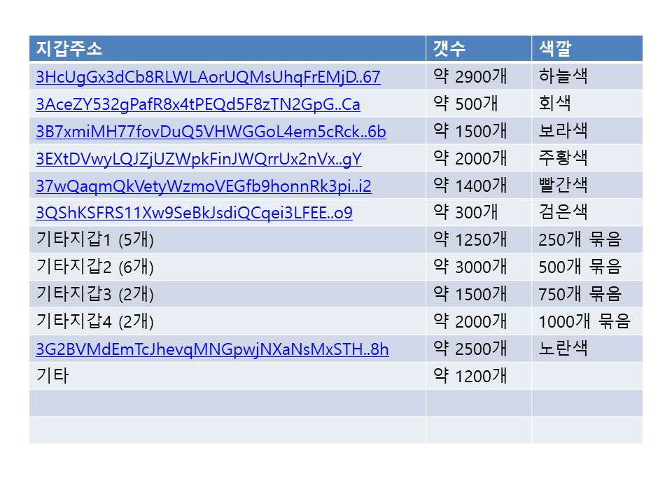 하늘색 지갑과 비슷하게 거래내역이 1달에 한번 꼴로 뜸하고, 몇 백개 단위로 이체되어 왔습니다!!