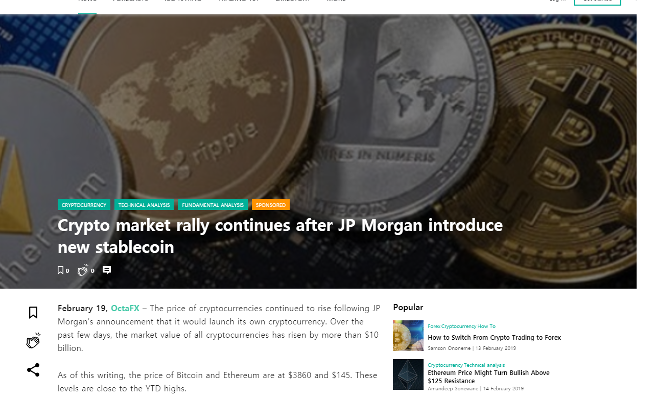 물론 이 자체로도 JP 모건이 자체 코인을 발행한다는 것은 크나큰 호재입니다!!