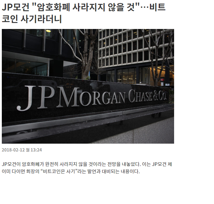 JP 모건은 비트코인이 사기라고 했던 것을 후회 한다며, 비트코인에 대한 입장을 바꾸었습니다!!!