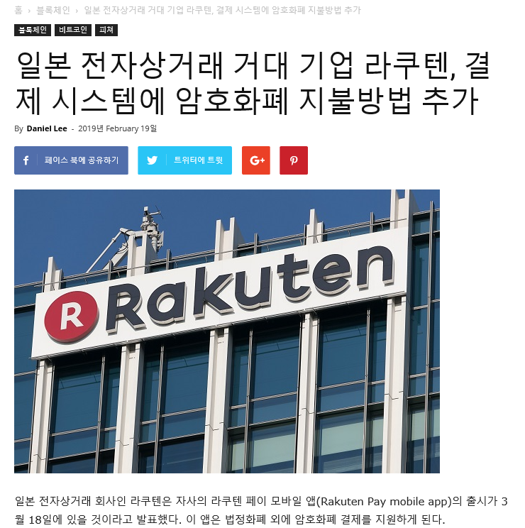 또한, 일본의 전자상거래 거대 기업 라쿠텐 또한 암호화폐 결제 시스템을 추가했습니다!!