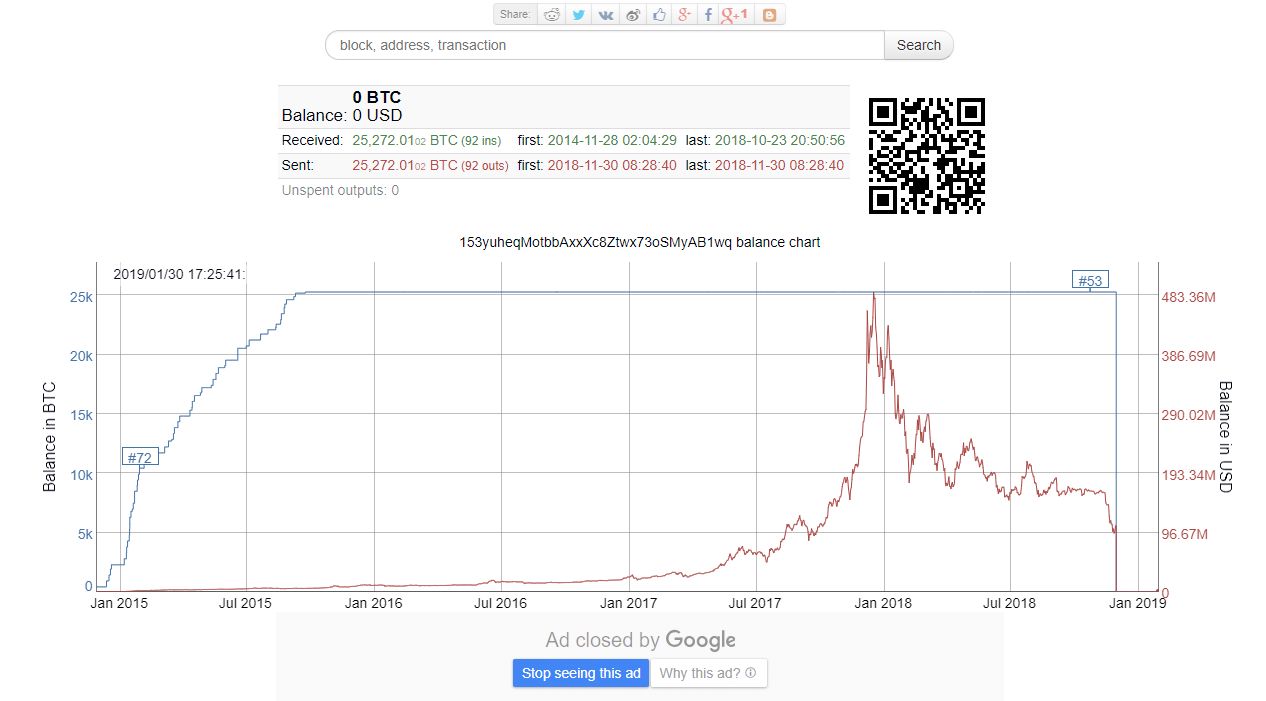 위 지갑은 작년에 대략 300,000 BTC의 이동을 불러일으켰는데요~~~