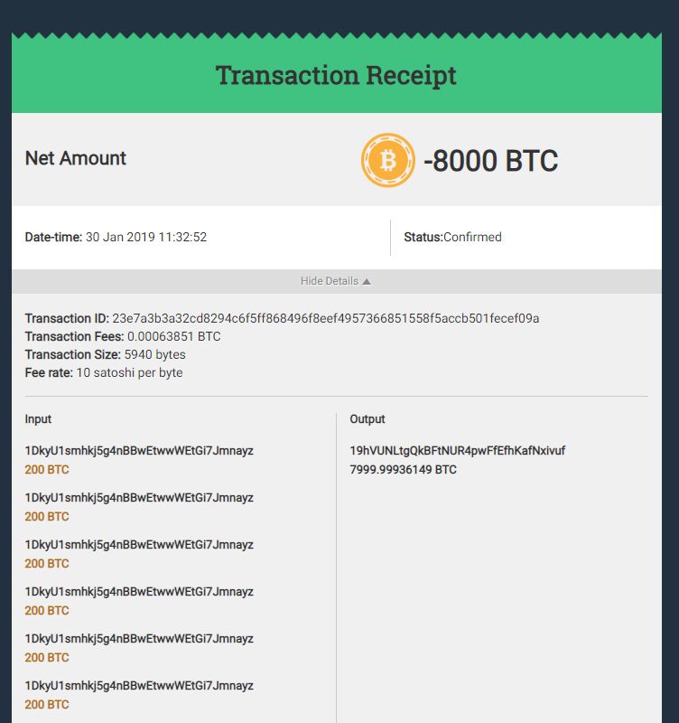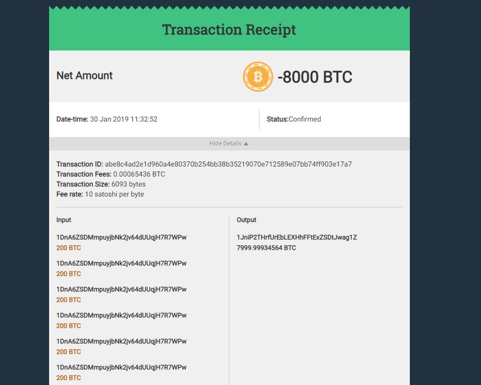 그 지갑은 8,000 BTC 씩 나눠서 보관하다가 오늘 1월 30일 다시 움직임을 보였습니다!!!
