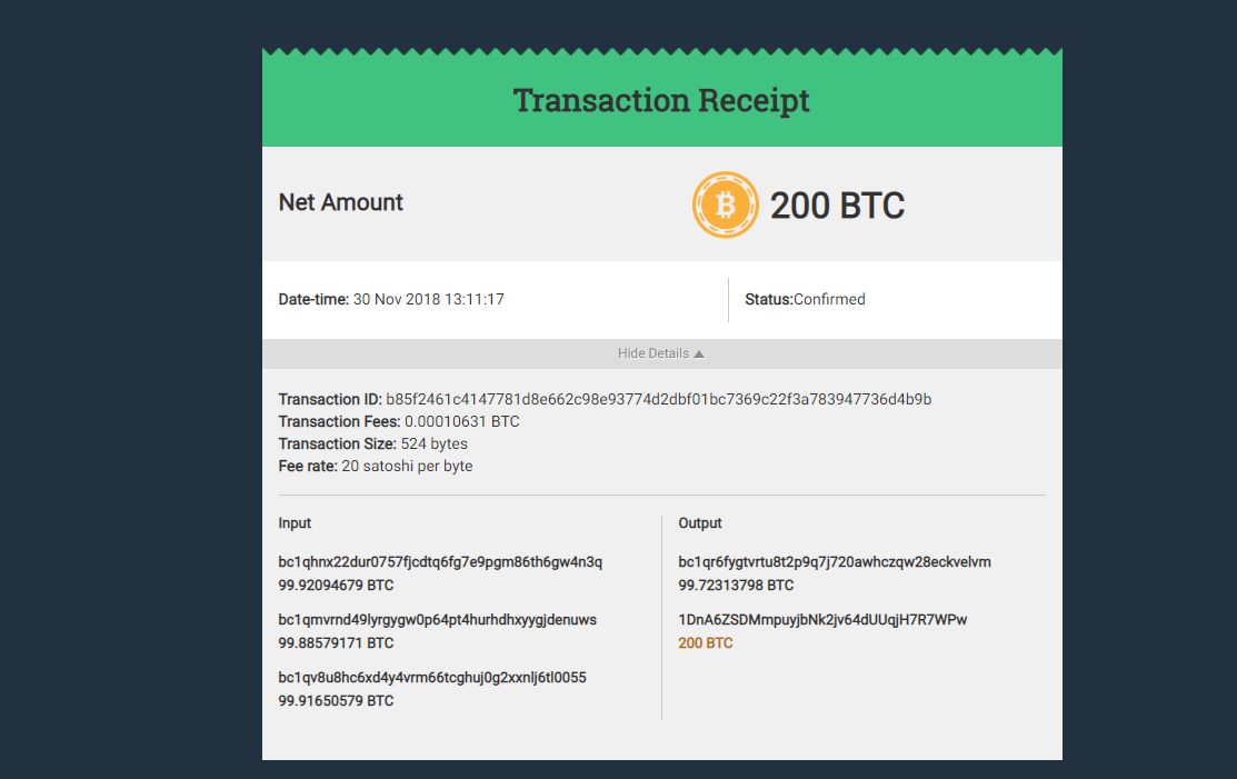 이체 받은 200 BTC는 다시 99 BTC로 쪼개서 받은 것이고
