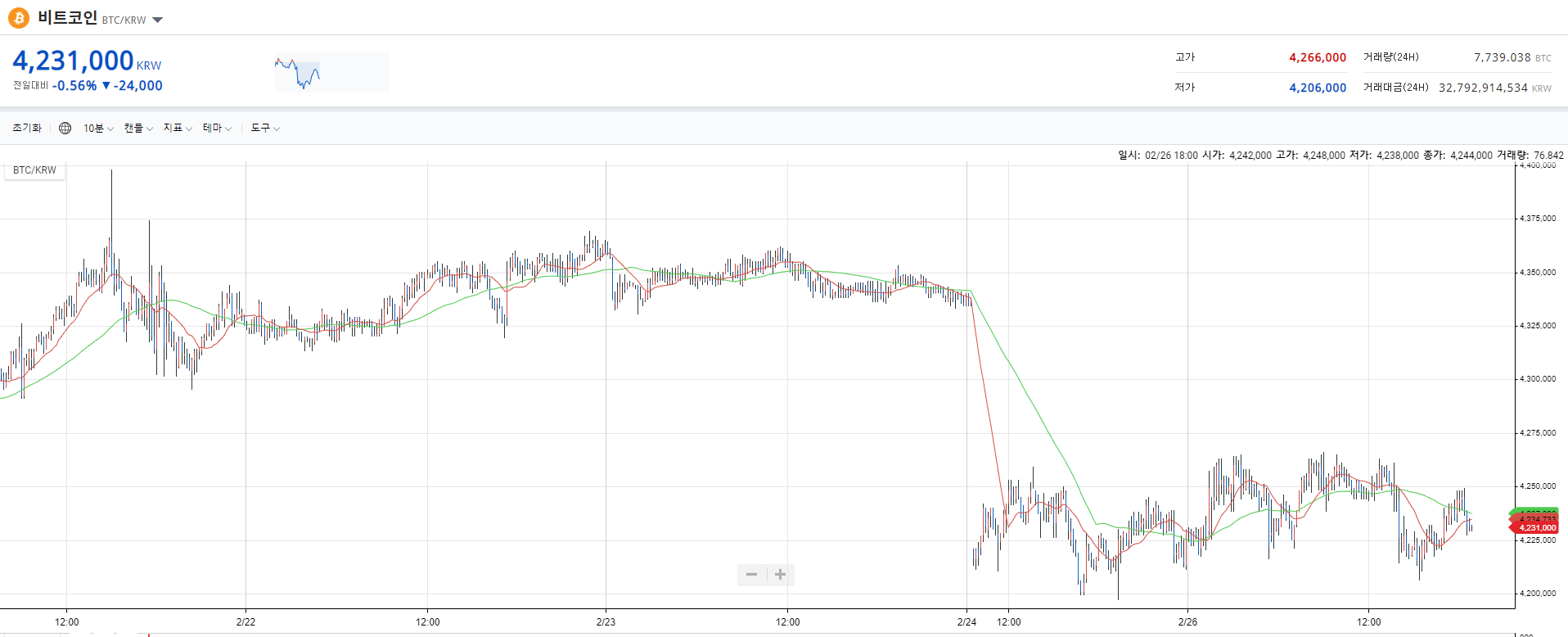 그래도 오른 가격에 비하면 이정도 하락은 조정으로도 볼 수 있을 것 같은데요~~