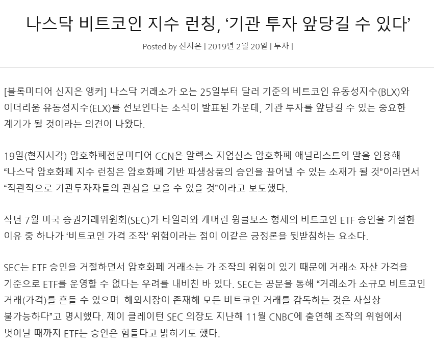 이는 현재 나스닥 뿐만 아니라 ETF 승인에도 영향을 끼칠 수 있을 것 같은데요~~~