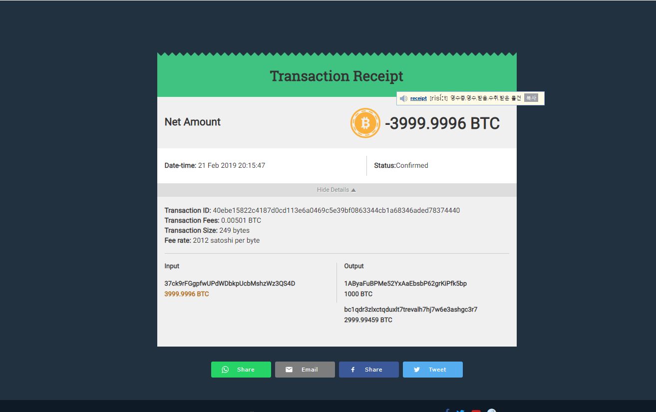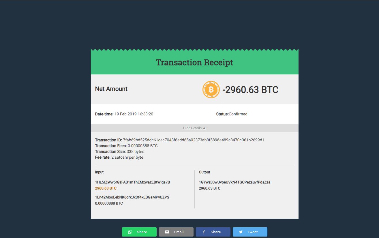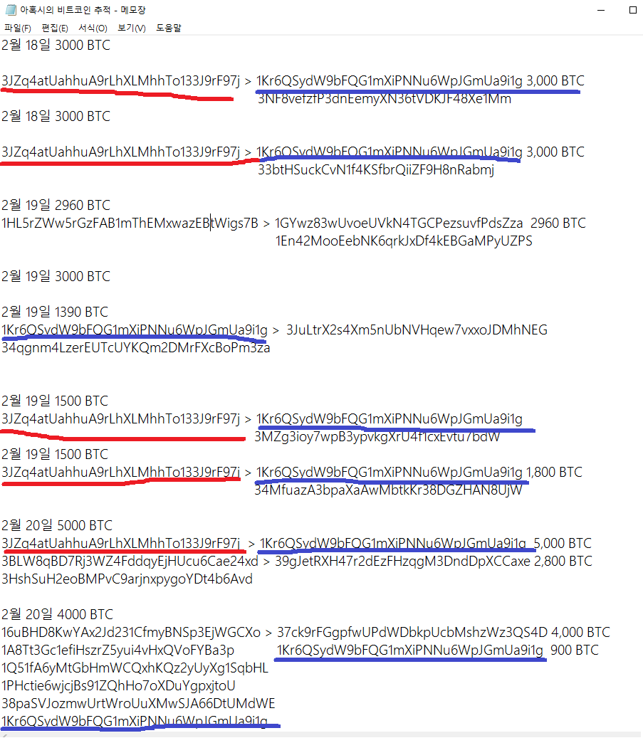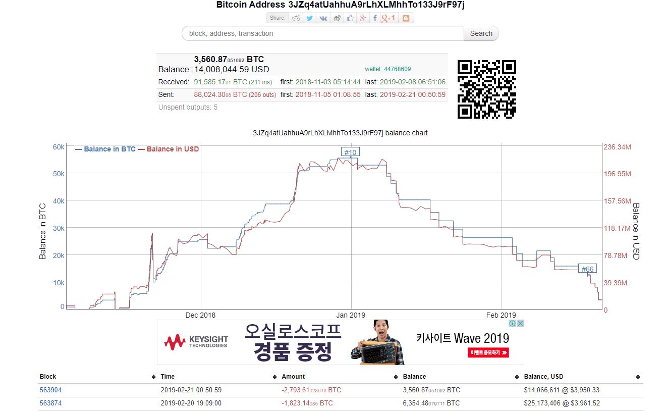 2월 19일 날 이체된 2960 BTC를 추적해본 결과!!
