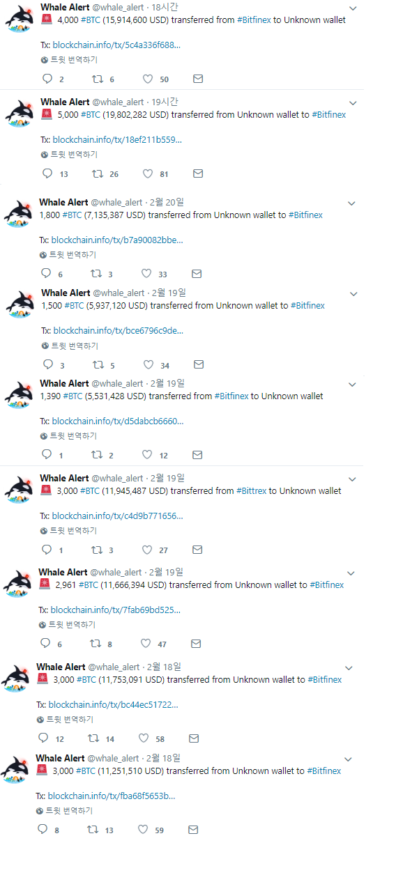 비트파이넥스에서 현재 많은 이체가 진행되고 있는데요~~
