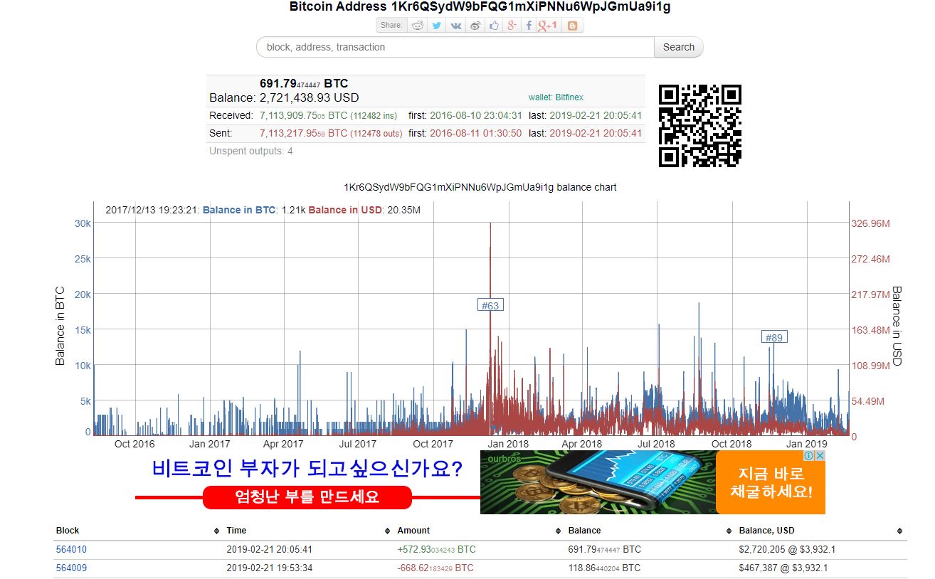 비트파이넥스의 활성화 지갑인 것을 알 수 있습니다!!