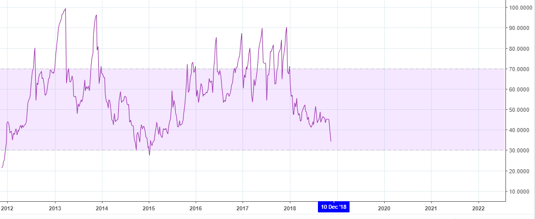 The last time the weekly RSI was oversold was during the long bear market in 2014. Is this what we need to reach before the bull market starts?
