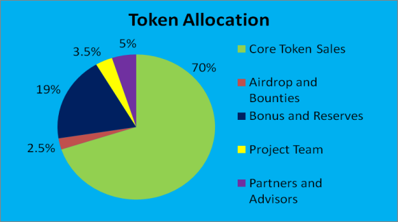 70% dari semua koin tersedia untuk dibeli selama ICO. Rincian