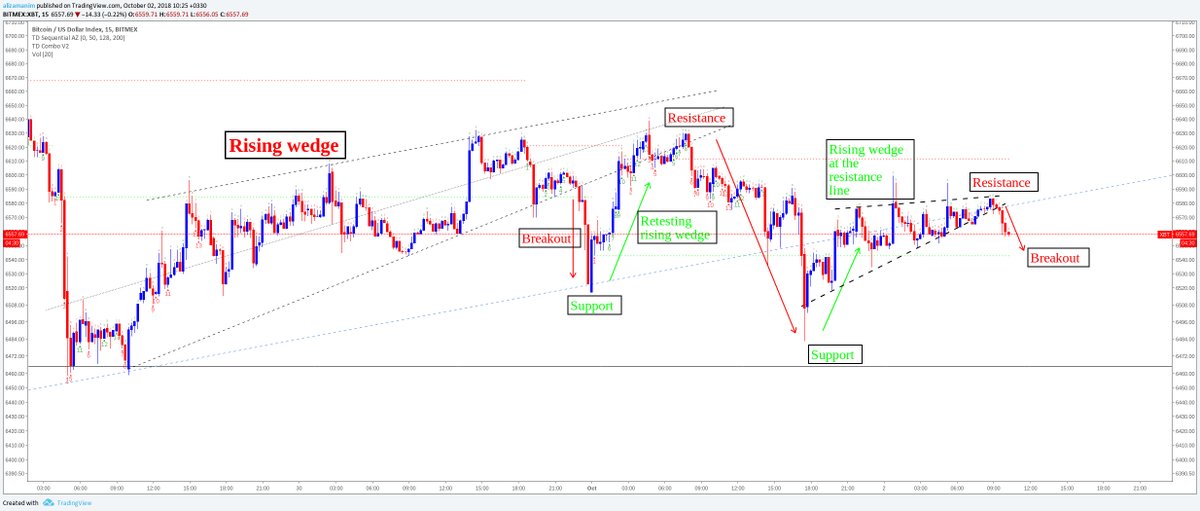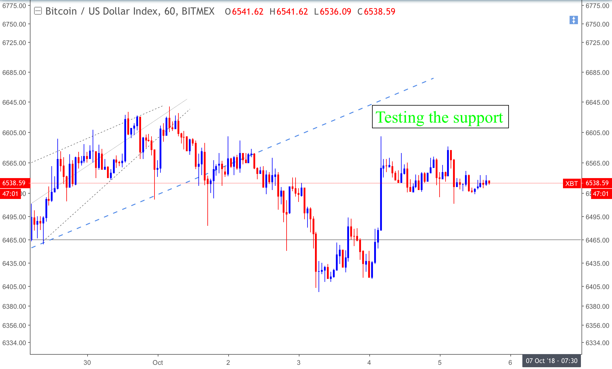 Yesterday during the Bitfinex maintenance we saw a spike up which tested the support line that was broken earlier and acted as a resistance and price was pushed back before reaching it.