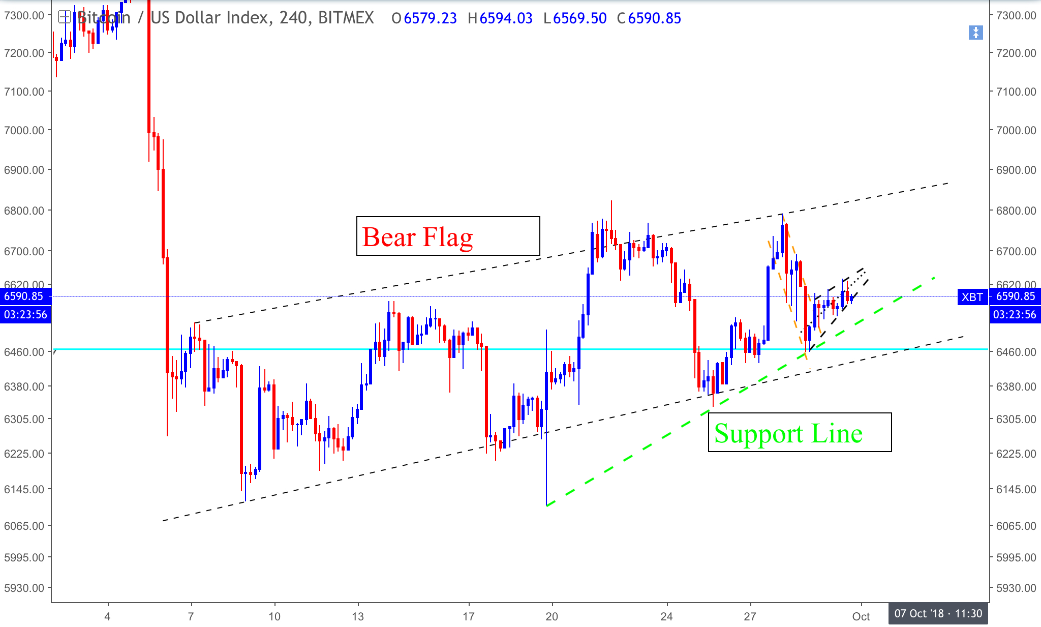 After last quick drop bitcoin is fluctuating in an up channel which can be considered as a huge bear flag (bearish pattern).