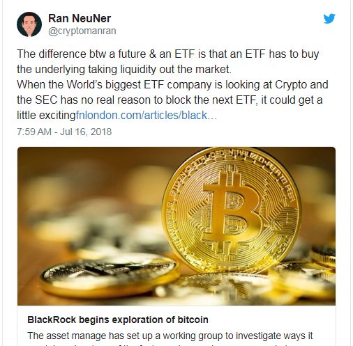 The alleged move of BlackRock caught the attention of cryptocurrency trader and host of CNBC’s Cryptotrader show Ran Neu-Ner