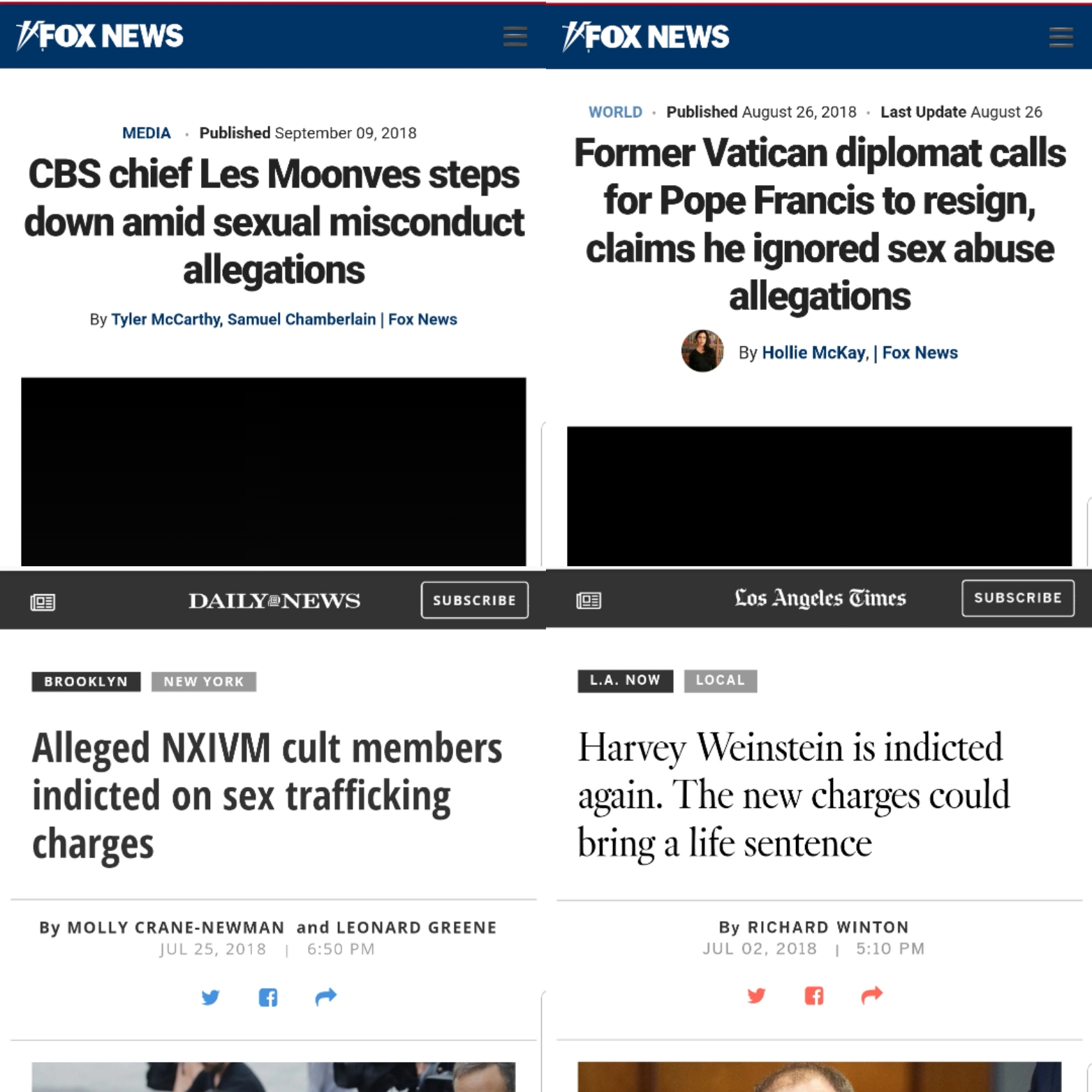 Unsealed indictments so far have included NXIVM (an elite billionaire/Hollywood cult that branded and trafficked women and children) and Harvey Weinstein (an uber powerful Hollywood executive/serial rapist that had traveled extensively with the Clintons and had Obama's daughter intern for him)