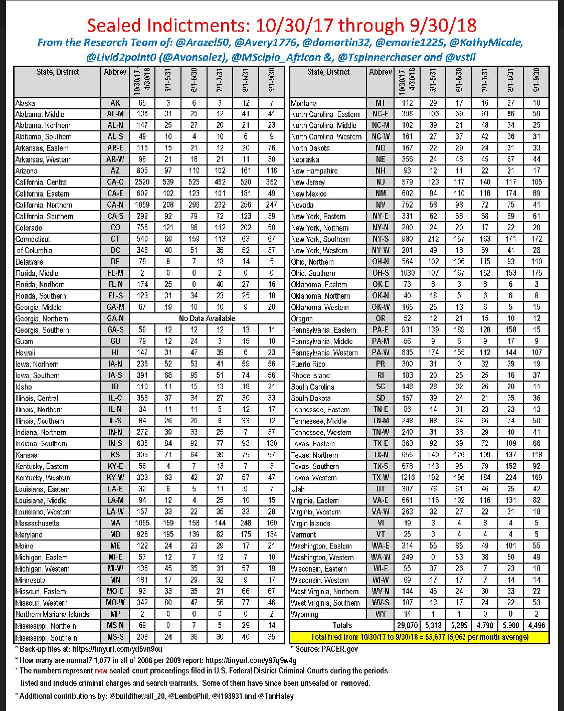 This investigation may explain why Attorney General Jeff Sessions hired an additional 300 assistant attorneys in June of this year, and may also hint at to what the 55,000 sealed indictments out in courts around the country (yearly average = 1,000) might be about.