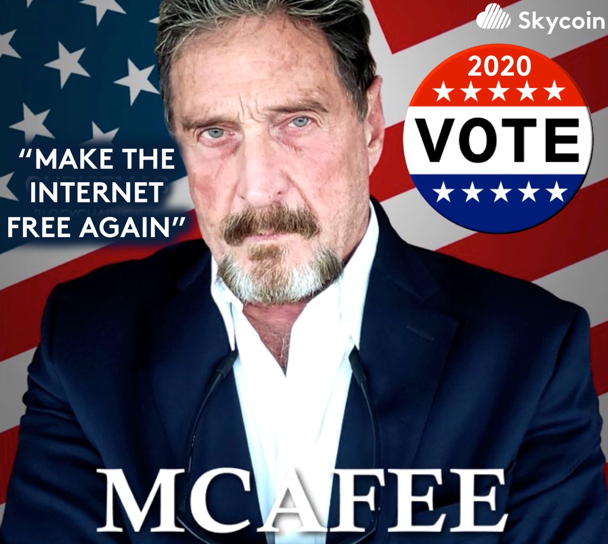 McAfee wants to use Skycoin’s social media platform BBS for his presidential campaign.