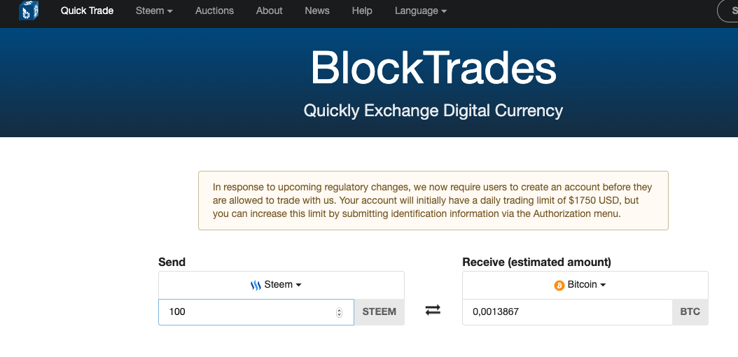 we make the case that I want to exchange 100 steem for btc :