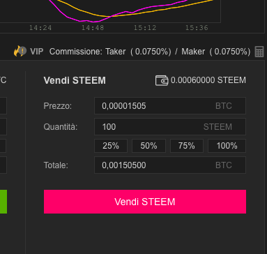 #1 binance : 100 steem --> 0.001505 btc