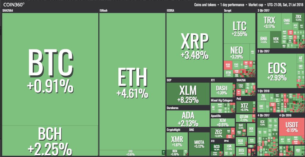 Crypto markets are seeing for the most part green today, July 21, proceeding with the energy of the current week's rise. The best ten altcoins are positively recovering quality today, up as much 8 percent, as indicated by Coin360, with Bitcoin (BTC) just marginally in the green, drifting close to yesterday's levels.