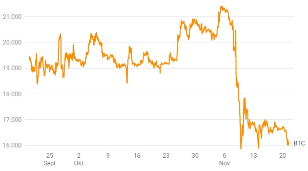 The course fell by more than 24 percent in the wake of the scandal. The digital gold found its temporary bottom at 15,792 US dollars. Since then, BTC has been oscillating in the narrow range between USD 16,000 and USD 18,000.