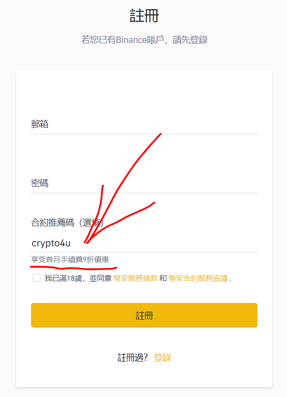 使用CRYPTO4U推薦人ID的幣安期貨的-10%費用