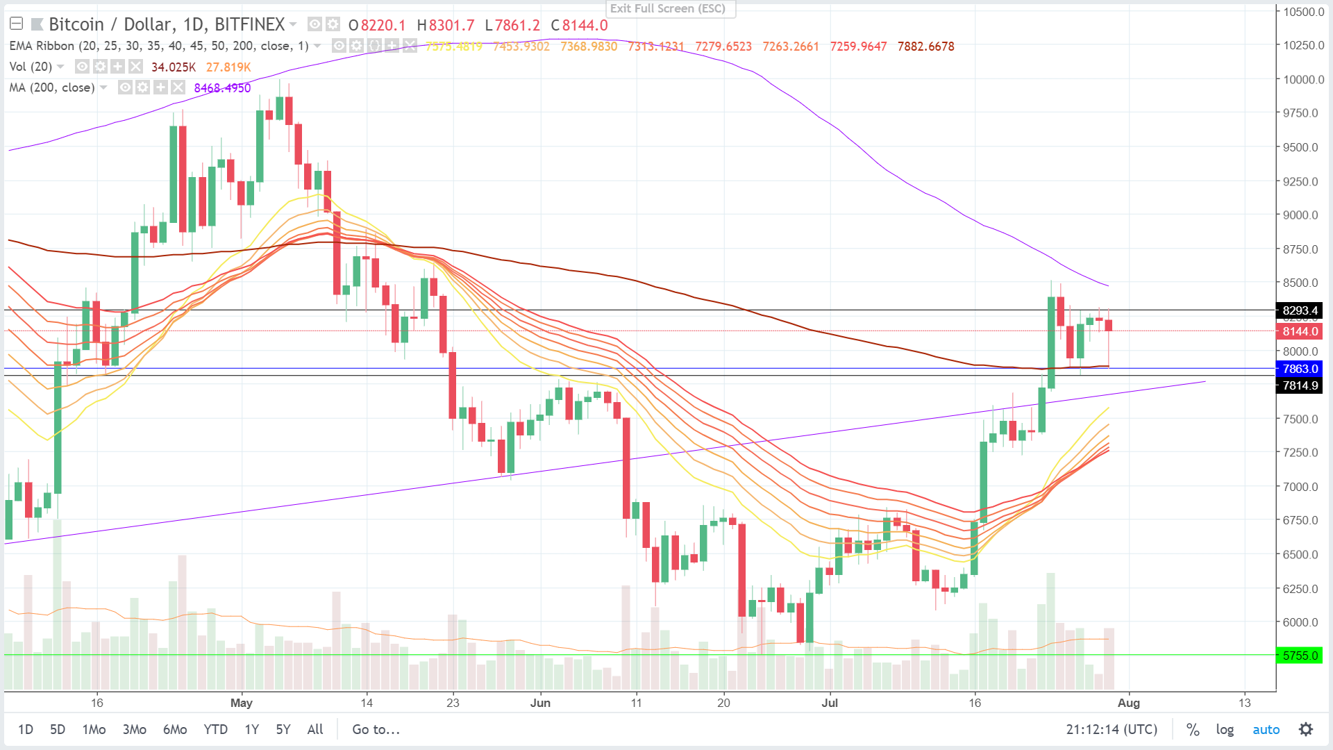 - Bitcoin is trading above $8100 which was a key support level before BTC broke it and dumped to $7800 level. Now BTC is holding $8100 again and if it moves up from here, the next level of resistance would be $8295 and then $8500.