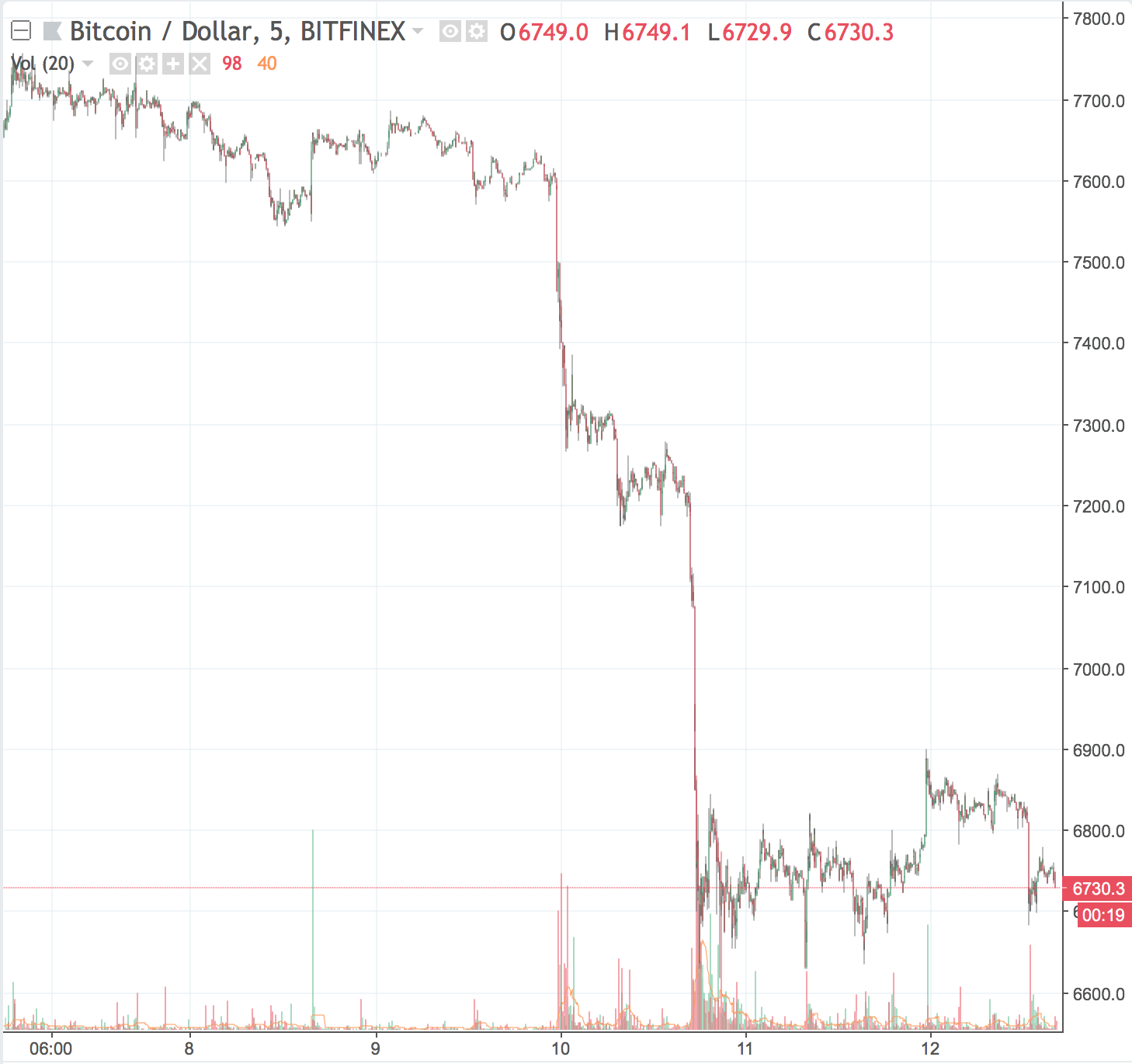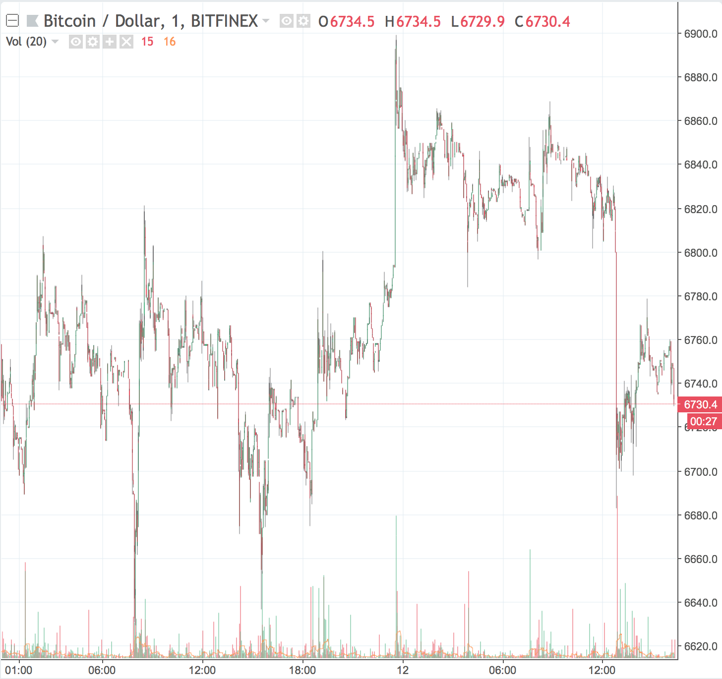 As you can see when comparing these three charts, Bitcoin has continued its overall downward trajectory, over the past month. However, when looking only at the past 24 hour period, Bitcoin value has hovered right around $6750. Our assessment at CryptoNews 24/7 is that this is most likely just another temporary plateau before another downward dip. The announcements over the past few days by the United States’ Chairman of the Securities and Exchange Commission regarding their stance on Bitcoin not being a security, while most ICOs are will likely strengthen Bitcoin’s positioning in the long-term, but we are currently experiencing temporary losses while non-professional investors are wrapping their heads around what all of this means. We here at CryptoNews 24/7 expect the market to dip every time the Chairman seeks to “clarify” their position. CryptoNews 24/7 will be holding our BTC assets and possibly increasing our position if and when the price falls to $6000.