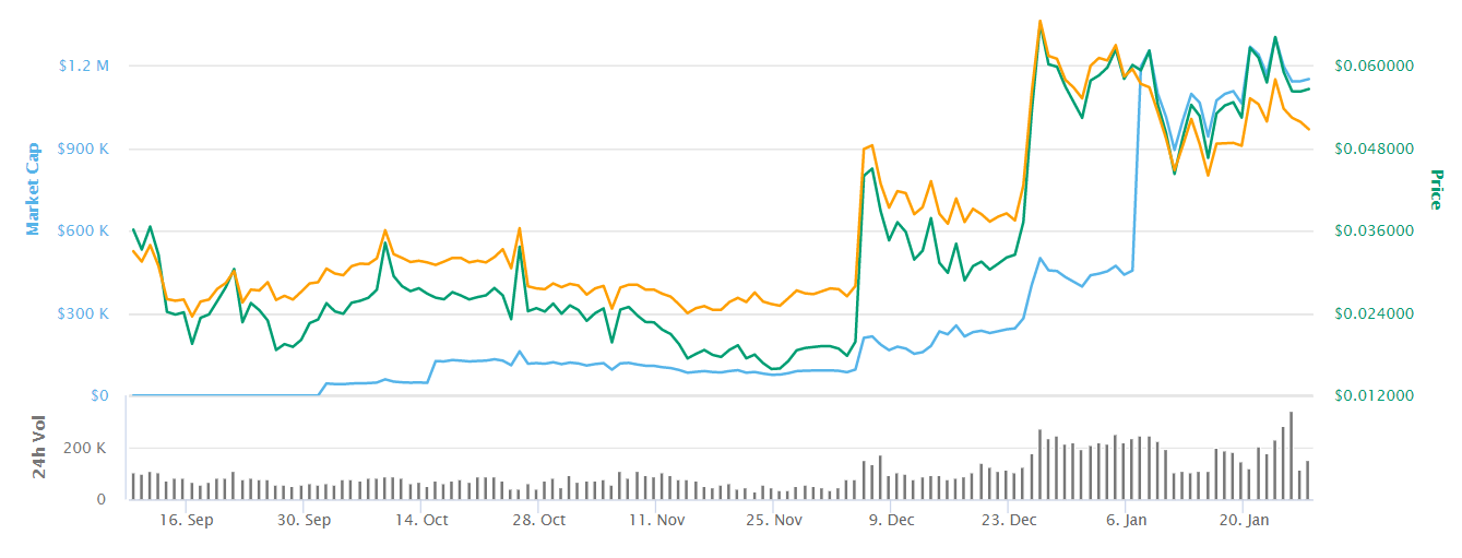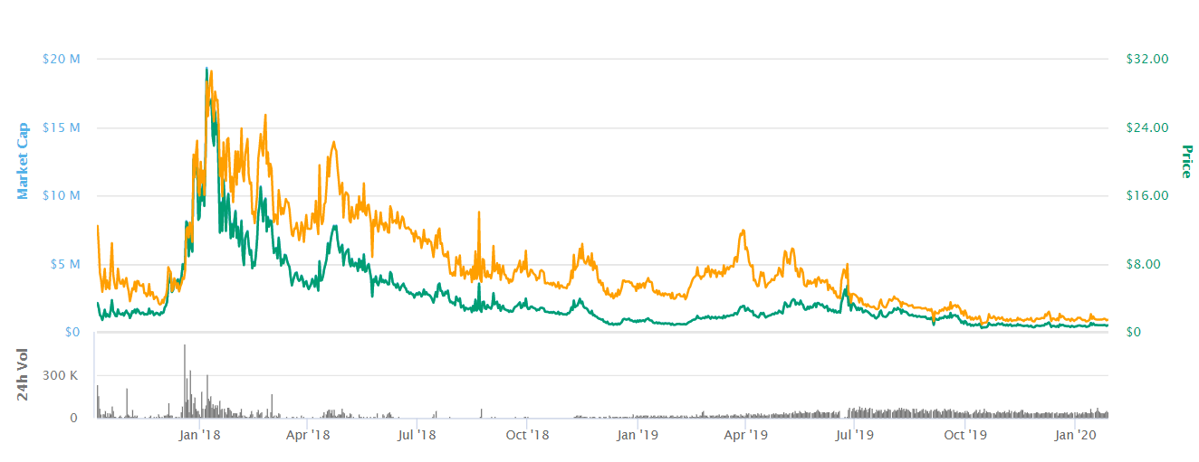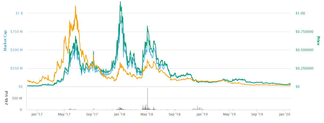If we look at the price of LBRY credit it has lost more than 90% of its value since 2018 but we are seeing a nice up trend forming since November 2019 more 300% up since then.