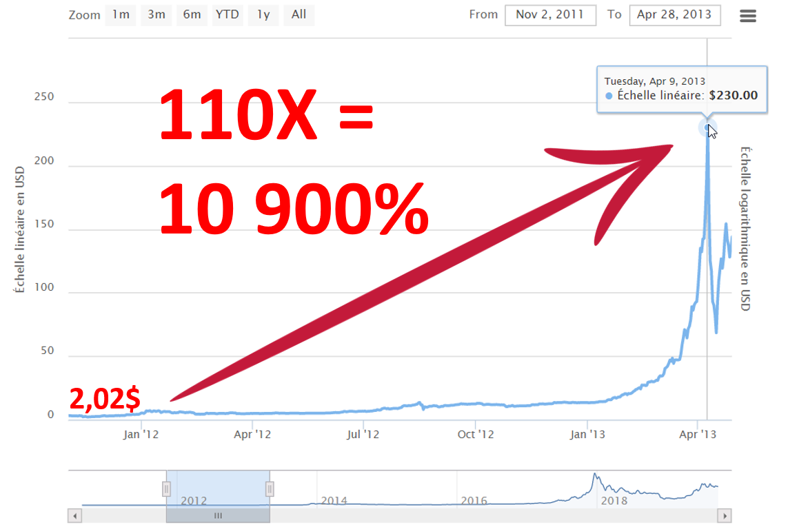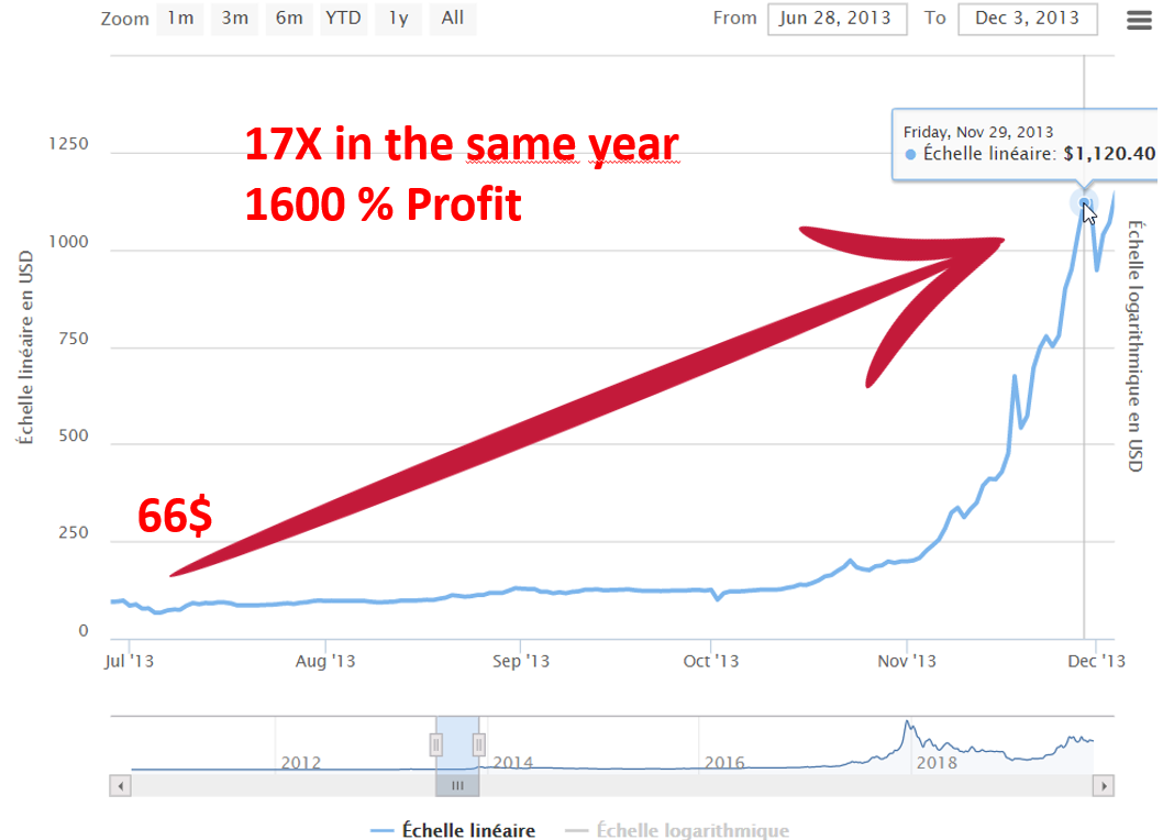 Then boom from 2$ to 230$ in 2013 which was a 110X profit more than 10 000% profit.