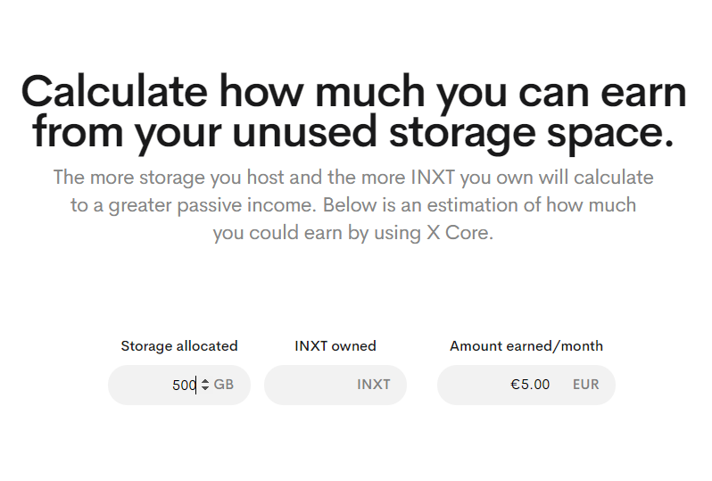 The more space you allocate, the more you earn, and if you want to know how much you can earn by renting your unused hard drive go to https://internxt.com/core and put the amount you want to allocate in their calculator and you will have an idea on how much you can earn per month.