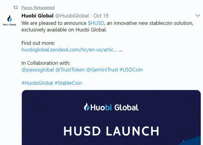 So far three of the listed stablecoins have shown positive support for the HUSD system through twitter.