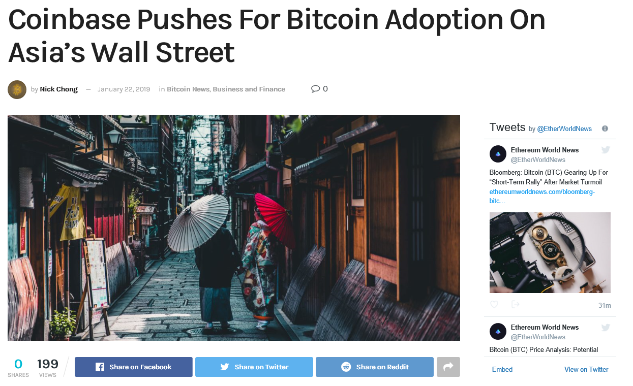 세계 최초 암호화폐 거래소인 코인베이스는 아시아로 진출할 계획이라고 한다.