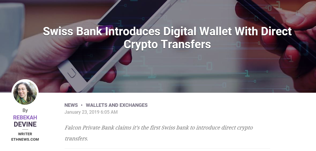 스위스의 팔콘 프라이빗뱅크는 2017년 7월 비트코인 등 암호 화폐 자산을 관리를 제공하는 최초의 은행이었다.