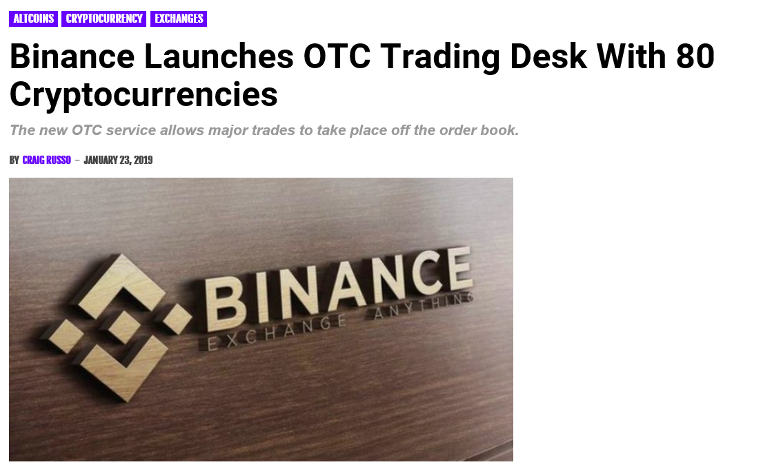 세계 최고의 암호 화폐 거래소인 바이낸스가 이번 주에 자체 장외거래 데스크 (OTC)를 출범시켰다고 한다.