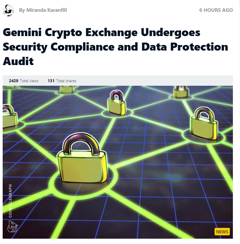 이를 전파하는 이유는 제미니가 최초로 이러한 감사를 받은 암호 화폐 사업이라고 한다.