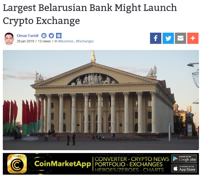 벨라루스에서 가장 큰 금융기관인 벨라루스 은행은 자체적인 디지털 자산 거래소를 계획하고 있다고 한다.