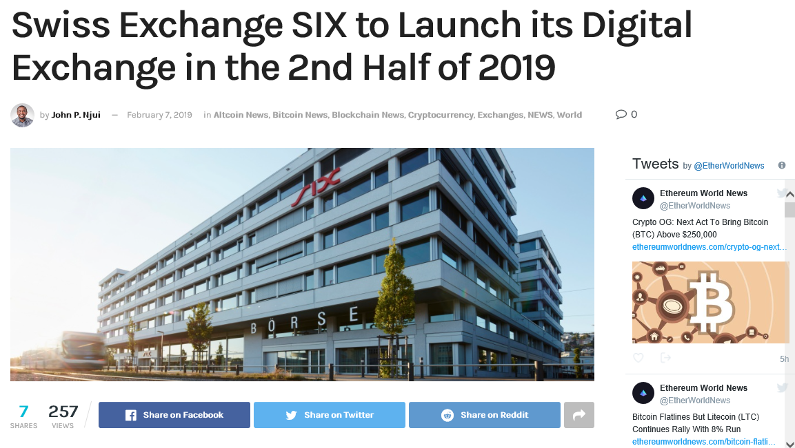 SIX는 이 전에도 암호 화폐 산업 최초의 교화 거래상품 (ETP)를 출시 한 바 있다.