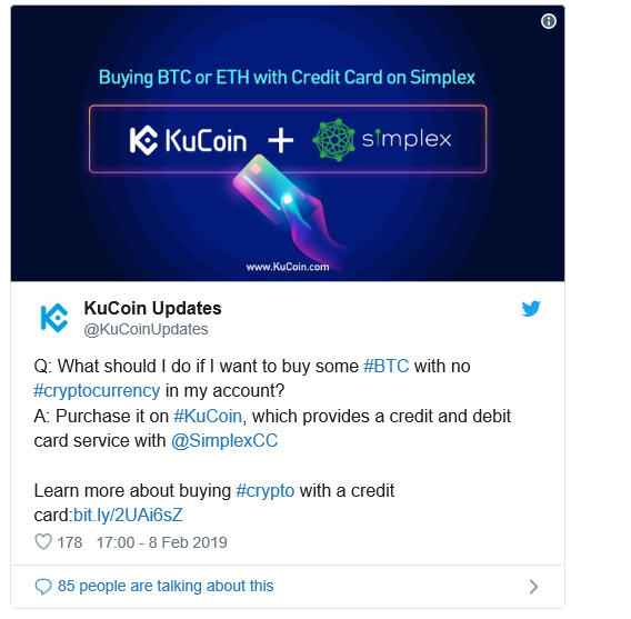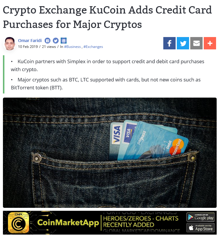 싱가포르에 소재하고 있는 가상 화폐 거래소 쿠코인은 신용카드로